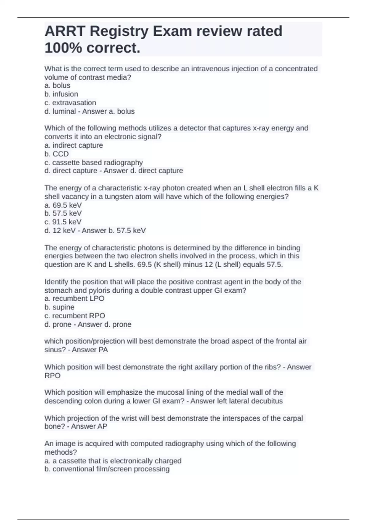 ARRT Registry Exam review rated 100% correct.