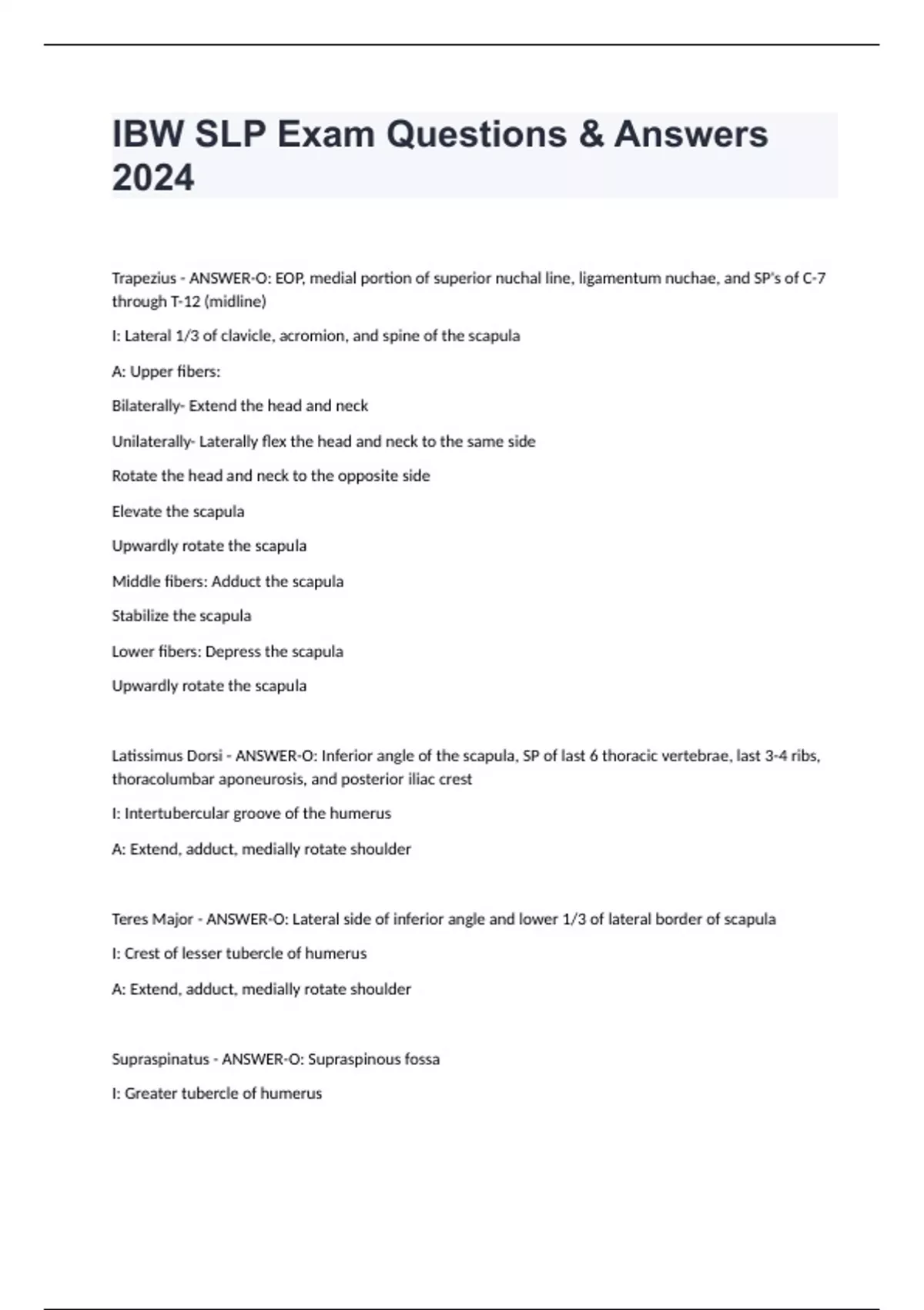 IBW SLP Exam Questions & Answers 2024