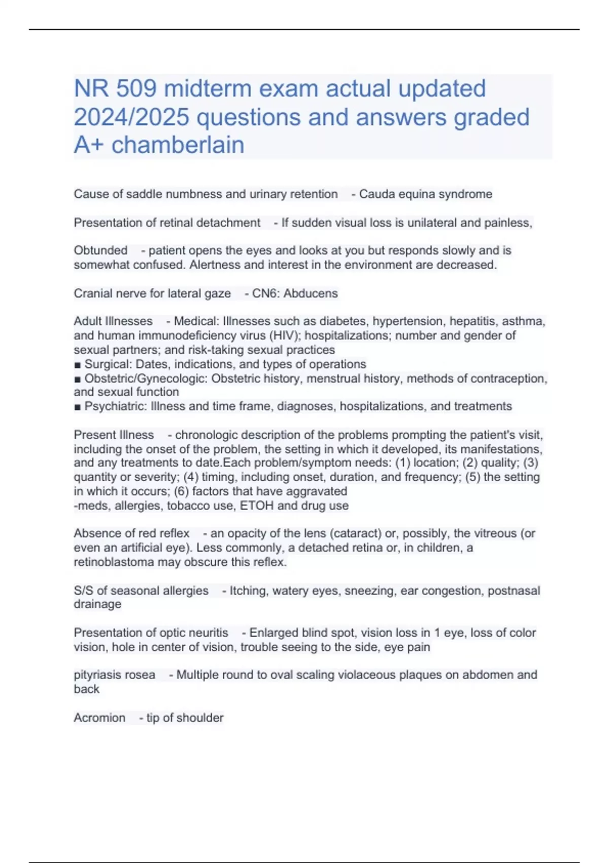 NR 509 midterm exam actual updated 2024/2025 questions and answers graded A+ chamberlain