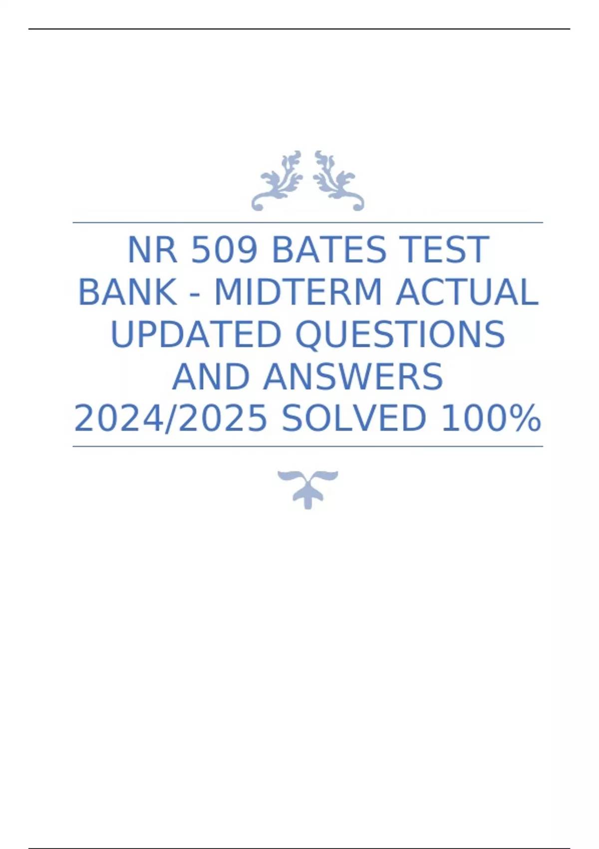 NR 509 BATES TEST BANK - MIDTERM ACTUAL UPDATED QUESTIONS AND ANSWERS 2024/2025 SOLVED 100%