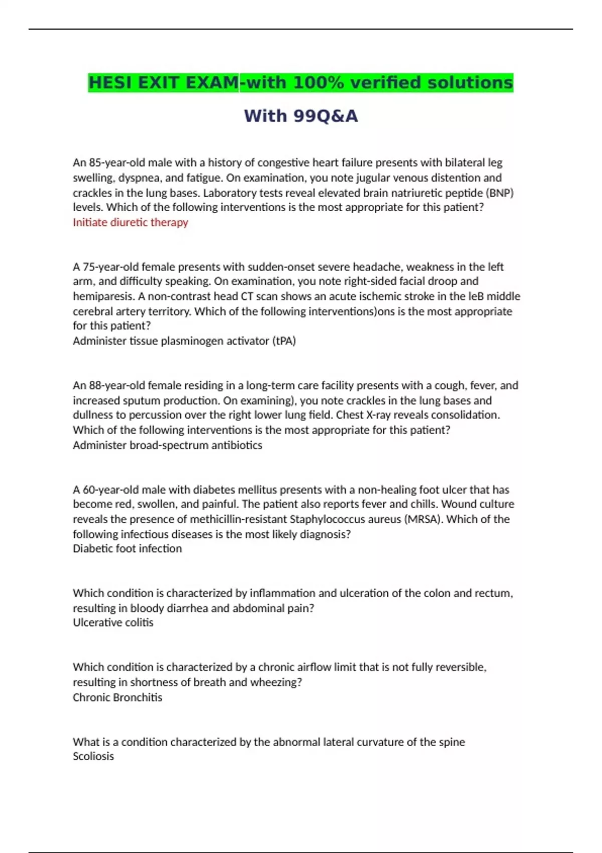 HESI EXIT EXAMS-with 100% verified solutions 2024-2025