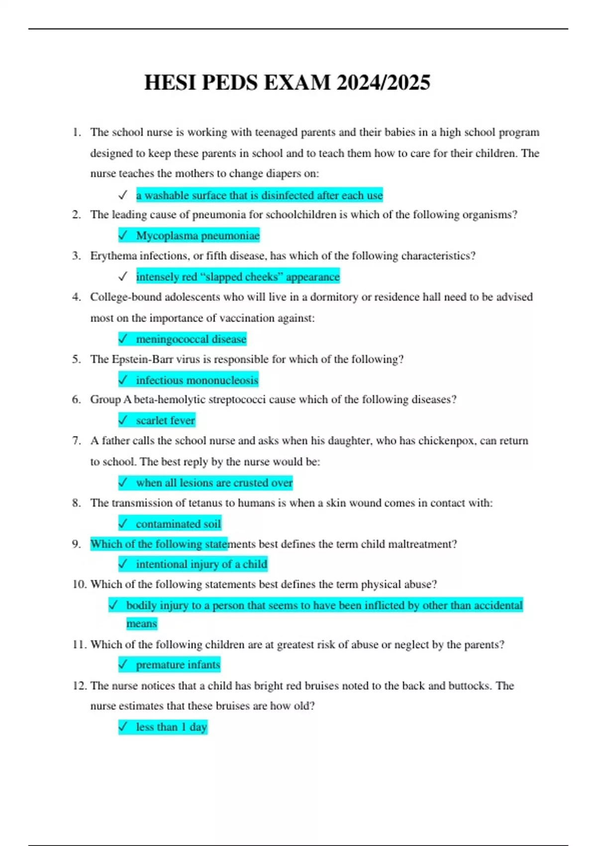 HESI PEDS EXAM 3 2024/2025 HESI PEDS EXAM 3 2024/2025 HESI PEDS EXAM 3 2024/2025