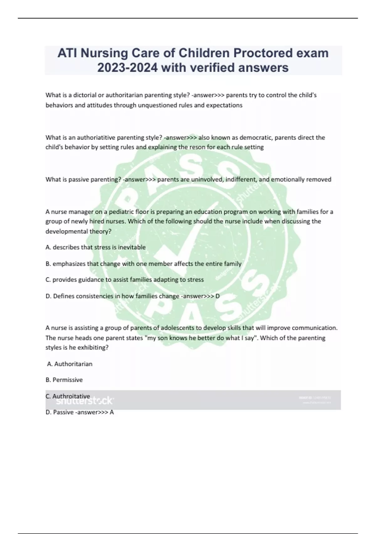 ATI Nursing Care of Children Proctored exam with verified answers