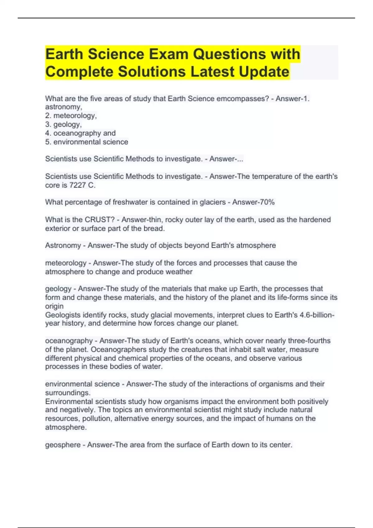 What are the five areas of study that Earth Science emcompasses? - Answer-1.