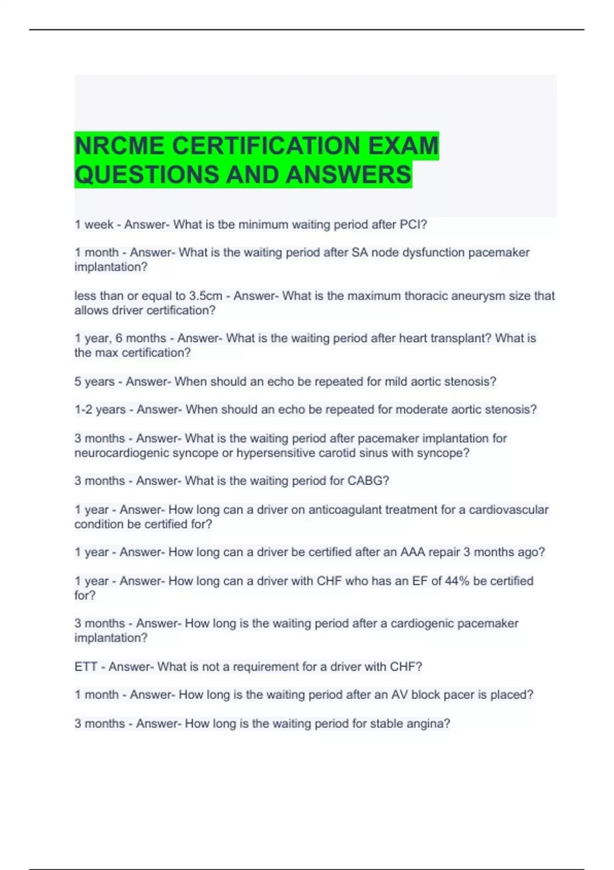 NRCME CERTIFICATION EXAM QUESTIONS AND ANSWERS