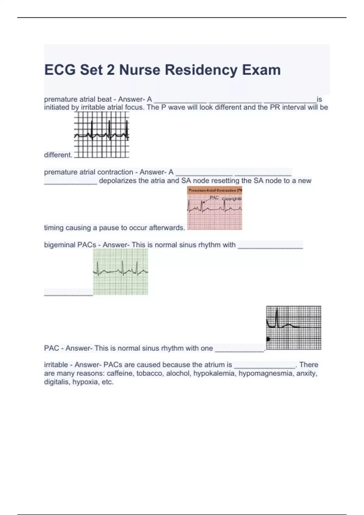 ECG Set 2 Nurse Residency Exam with complete solutions