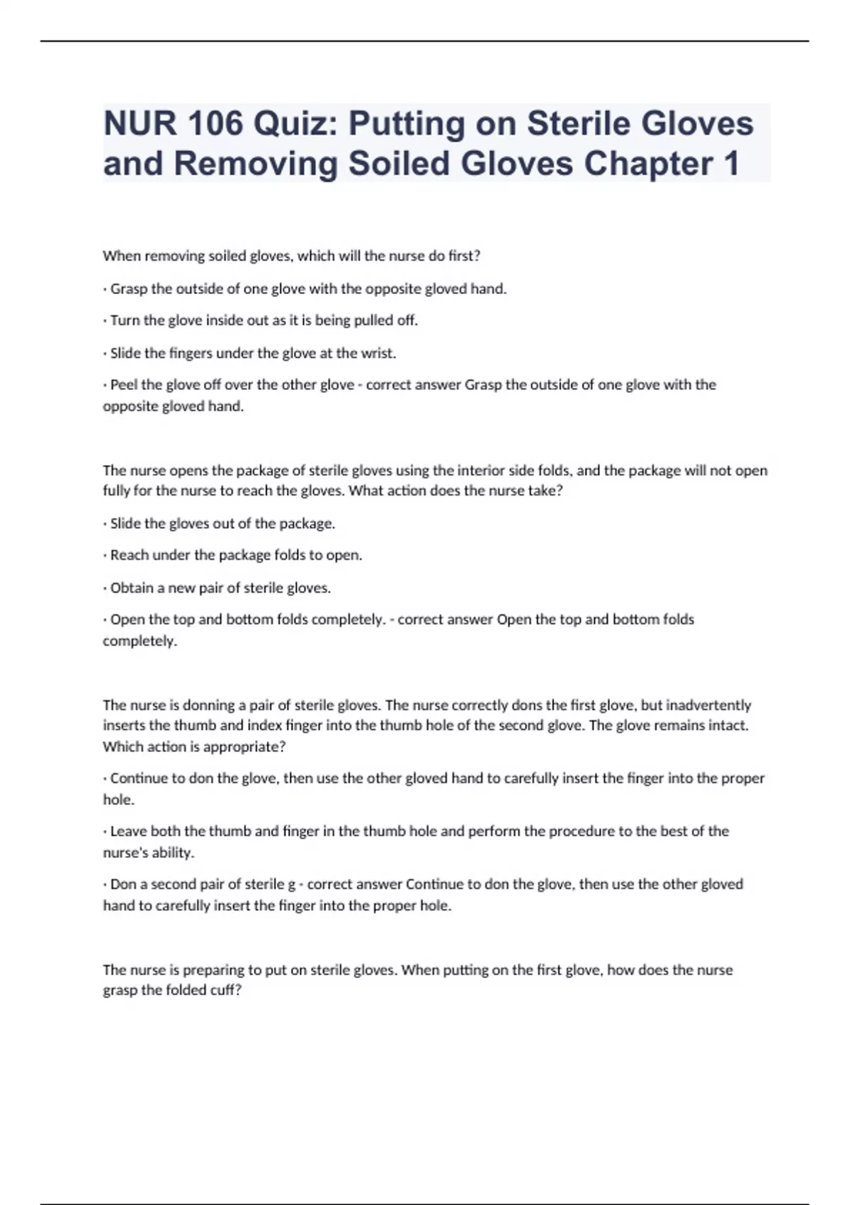 NUR 106 Quiz Putting on Sterile Gloves and Removing Soiled Gloves Exam Questions And Answers Rated A+ 2024