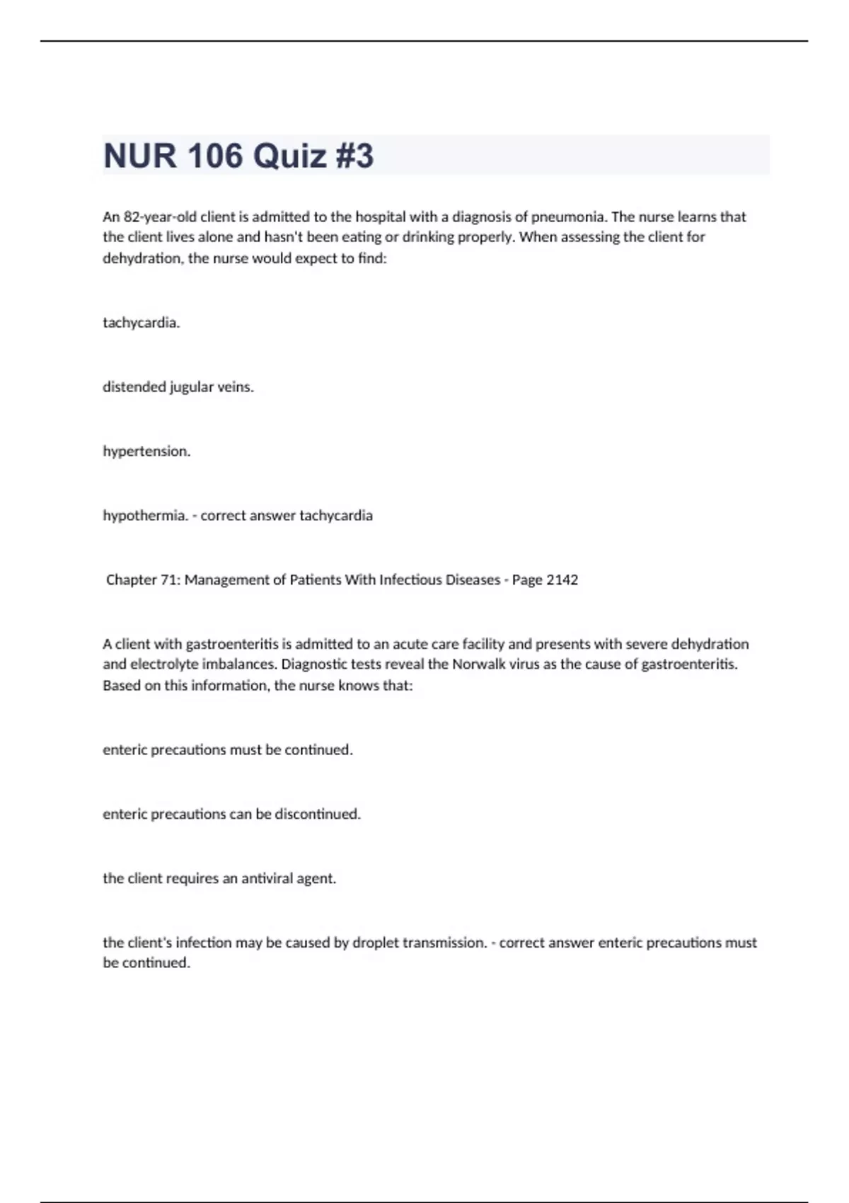 NUR 106 Quiz 3 Pre Exam With Verified Updated Answers 2024.