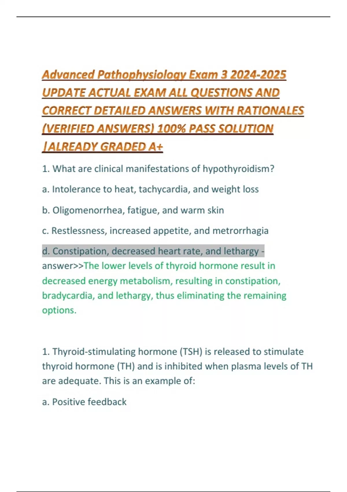 Advanced Pathophysiology Exam UPDATE ACTUAL EXAM ALL QUESTIONS AND CORRECT DETAILED ANSWERS WITH RATIONALES (VERIFIED ANSWERS) 100% PASS SOLUTION |ALREADY GRADED A+