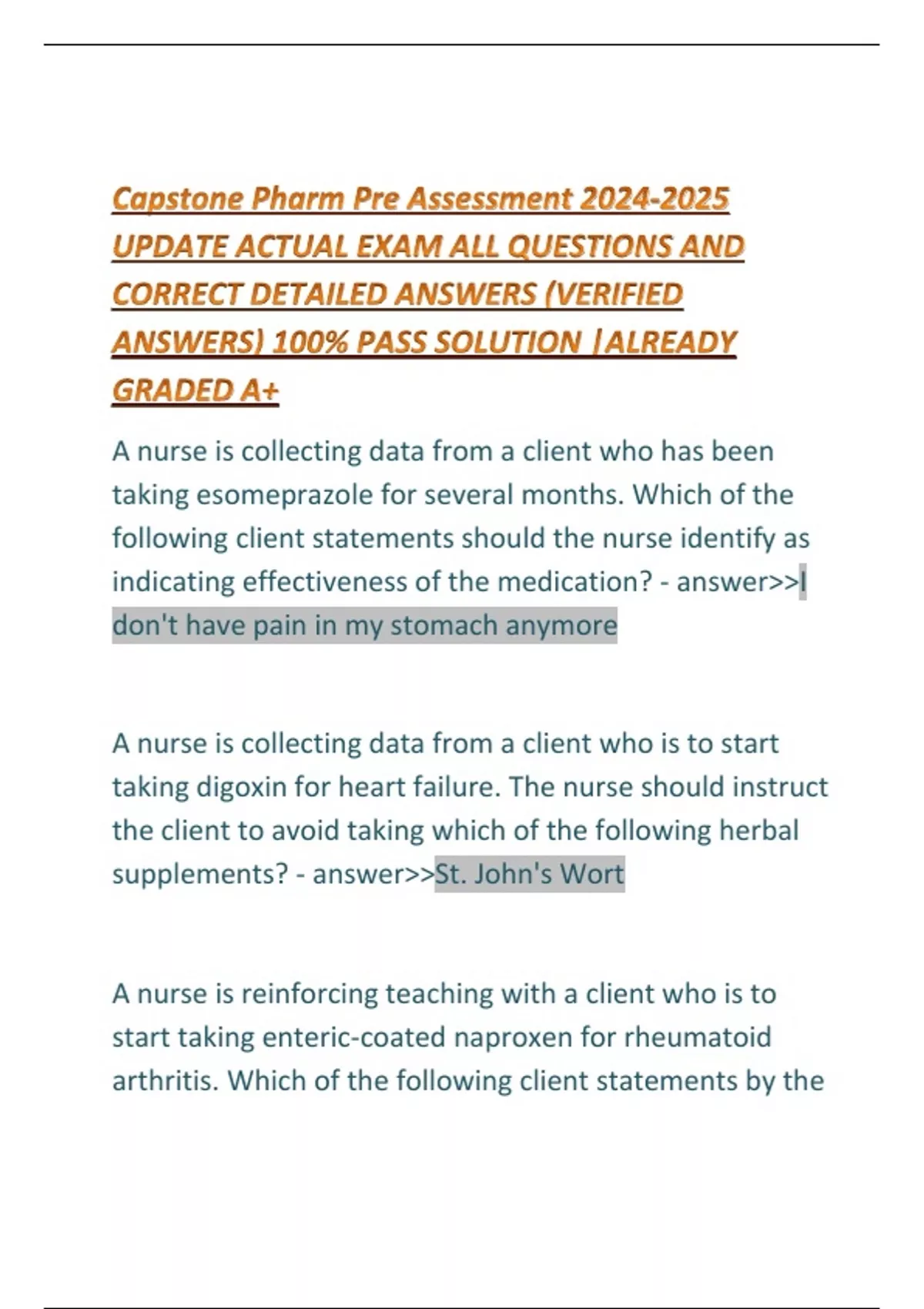 Capstone Pharm Pre Assessment UPDATE ACTUAL EXAM ALL QUESTIONS AND CORRECT DETAILED ANSWERS (VERIFIED ANSWERS) 100% PASS SOLUTION |ALREADY GRADED A+