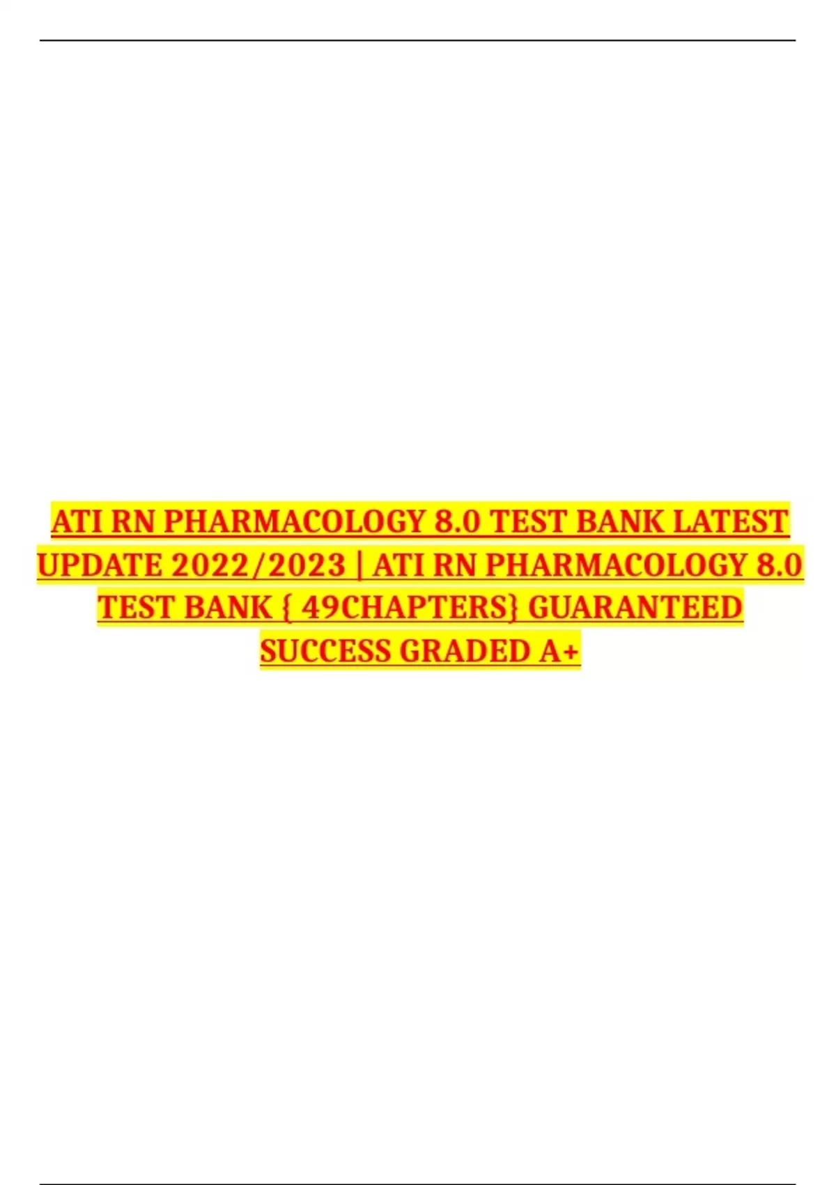 ATI RN PHARMACOLOGY 8.0 TEST BANK LATEST UPDATE 2022/2023 | ATI RN PHARMACOLOGY 8.0 TEST BANK { 49CHAPTERS} GUARANTEED SUCCESS GRADED A+ ATI RN Pharmacology 8.0 Questions & answers(NEW) ATIRNPharmacology(8.0) Chapter1
