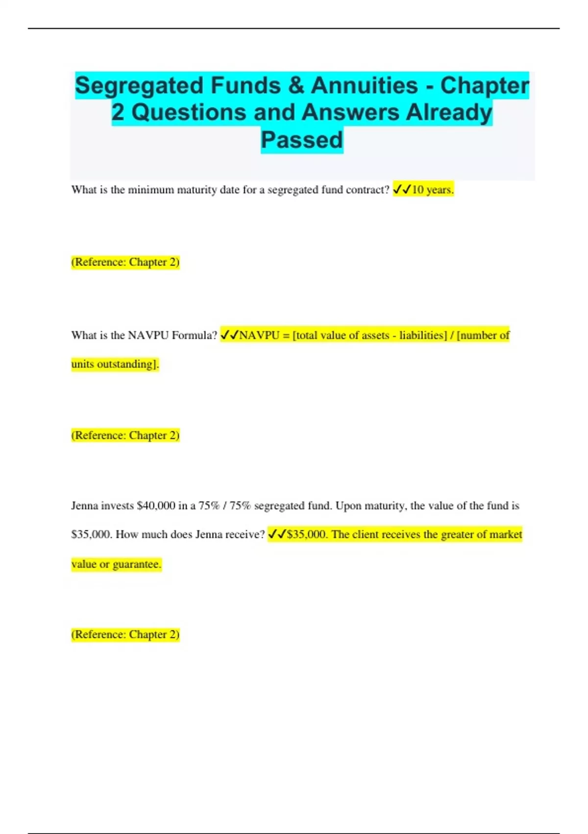 Segregated Funds & Annuities - Chapter 2 Questions and Answers Already Passed