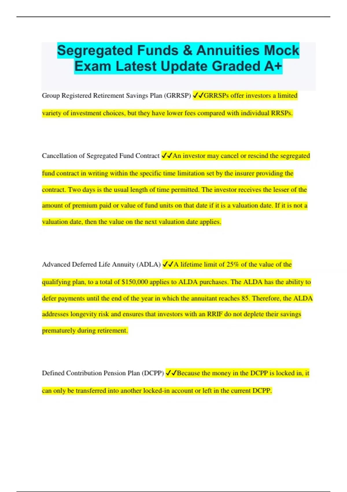 Segregated Funds & Annuities Mock Exam Latest Update Graded A+