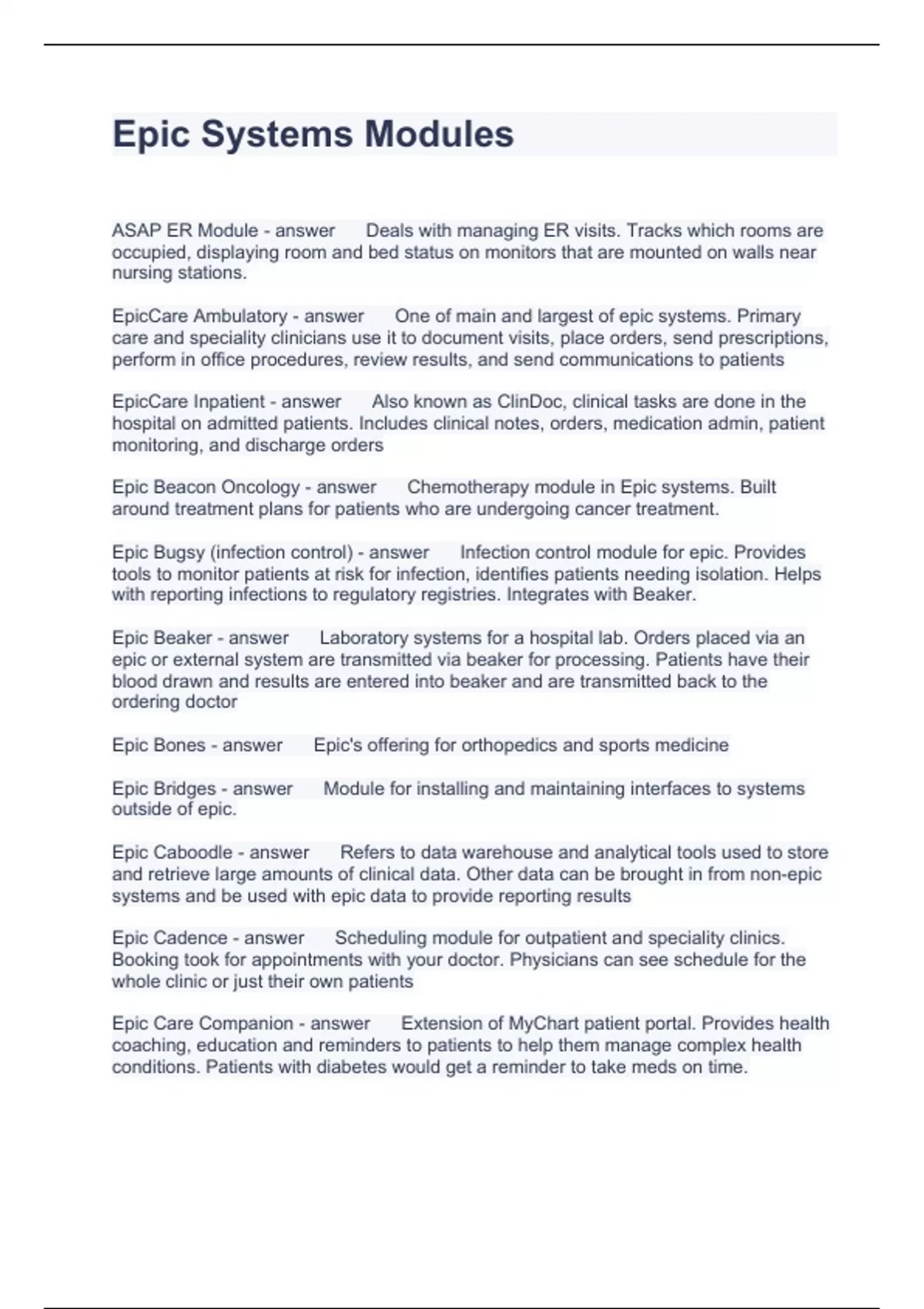 Epic Systems Modules Questions and Answers 2024
