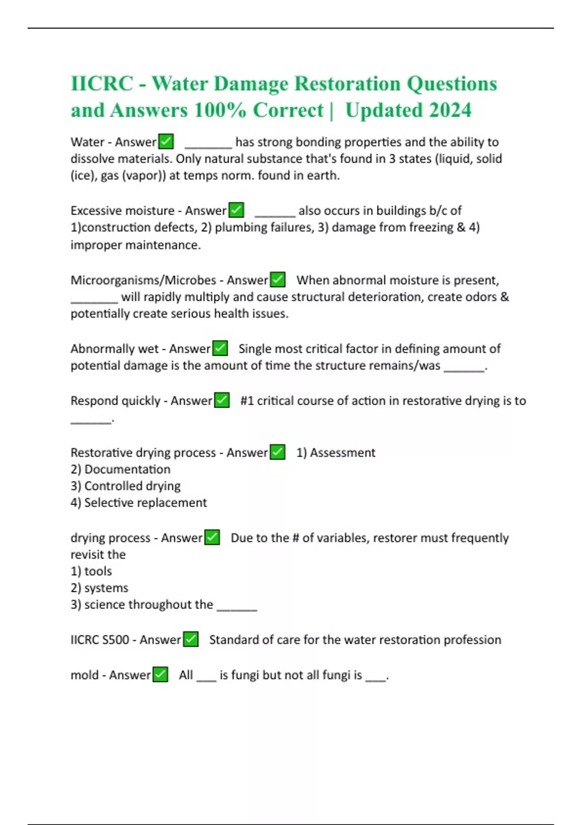 IICRC - Water Damage Restoration Questions and Answers 100% Correct | Updated 2024