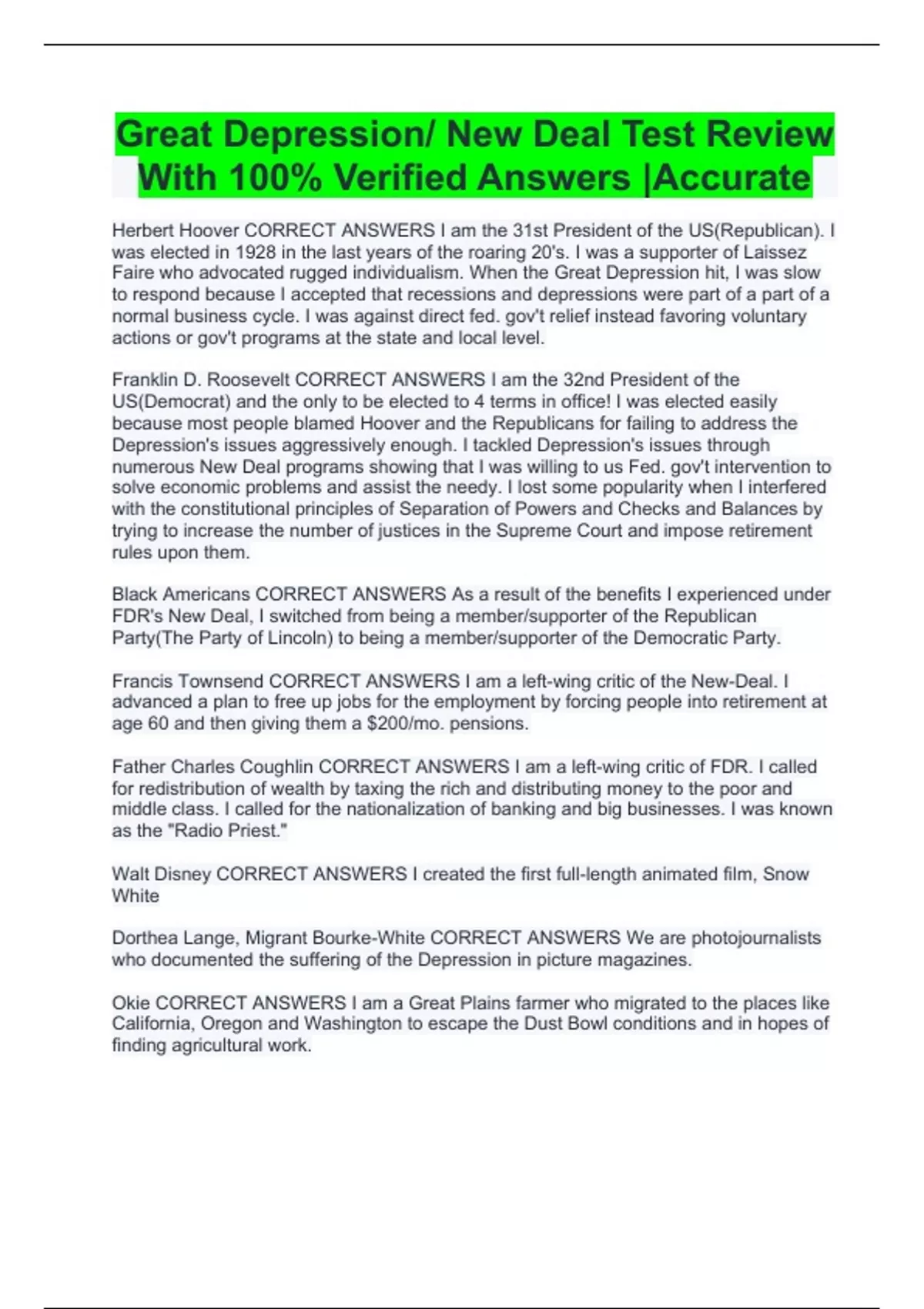 Great Depression/ New Deal Test Review With 100% Verified Answers |Accurate
