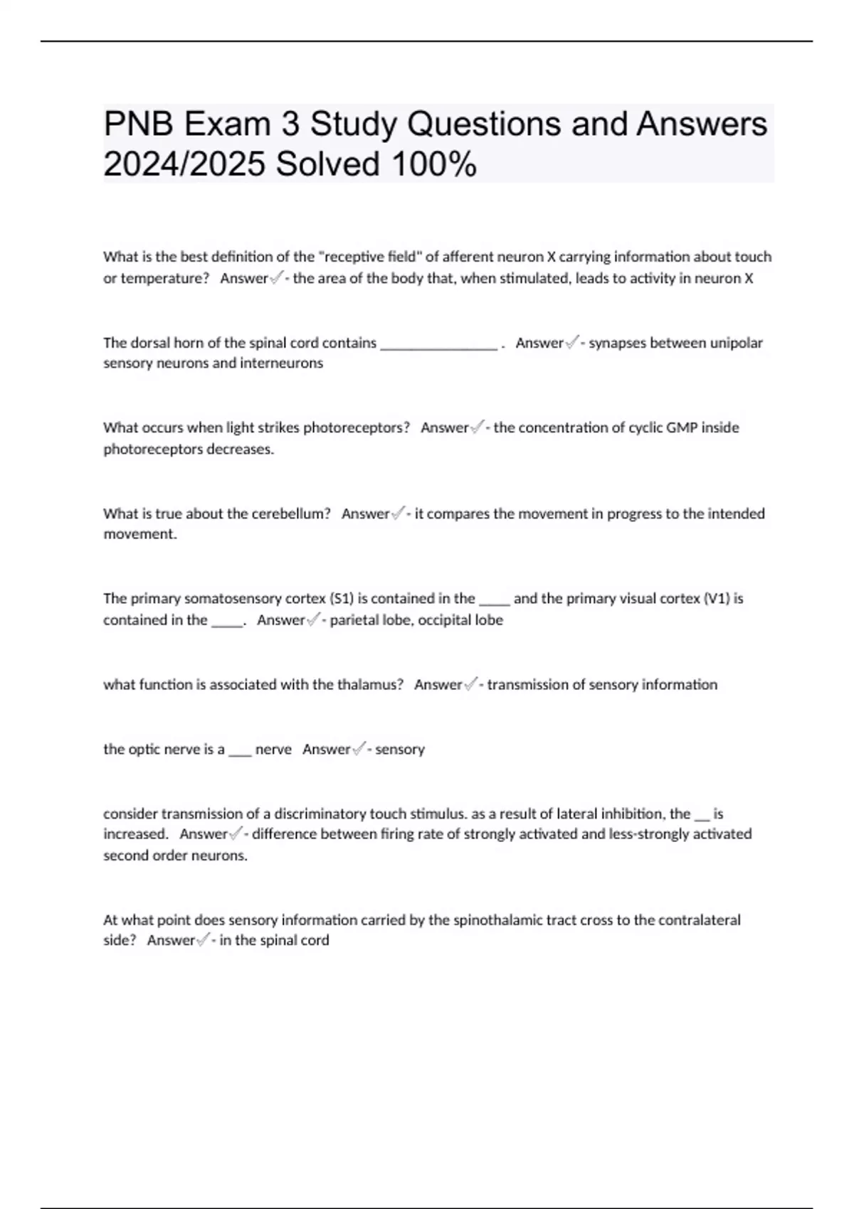 PNB Exam 3 Study Questions and Answers 2024/2025 Solved 100%