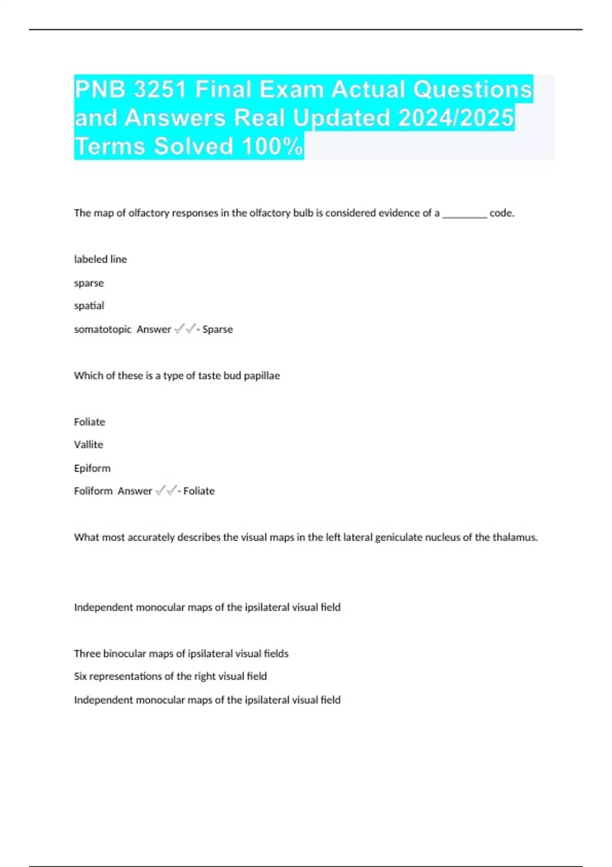 PNB 3251 Final Exam Actual Questions and Answers Real Updated 2024/2025 Terms Solved 100%