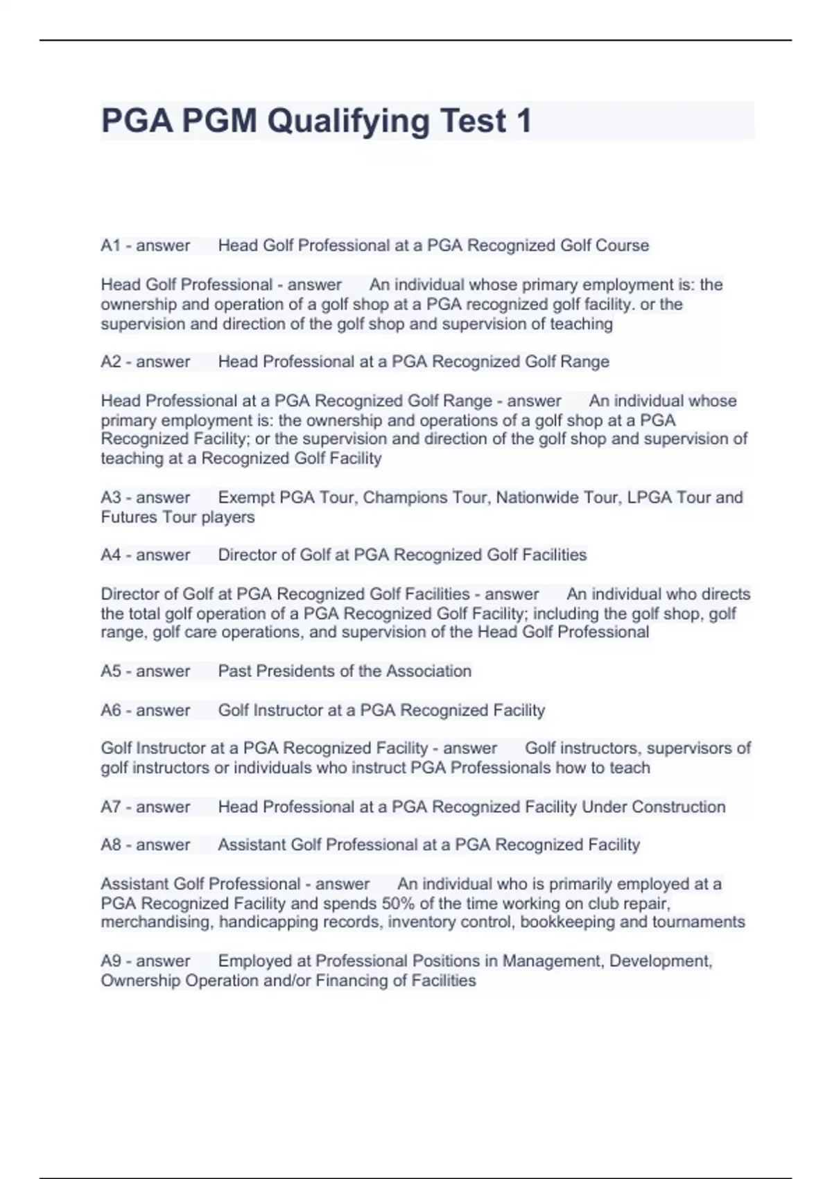 PGA PGM Qualifying Test 1 Questions with correct Answers 100% correct