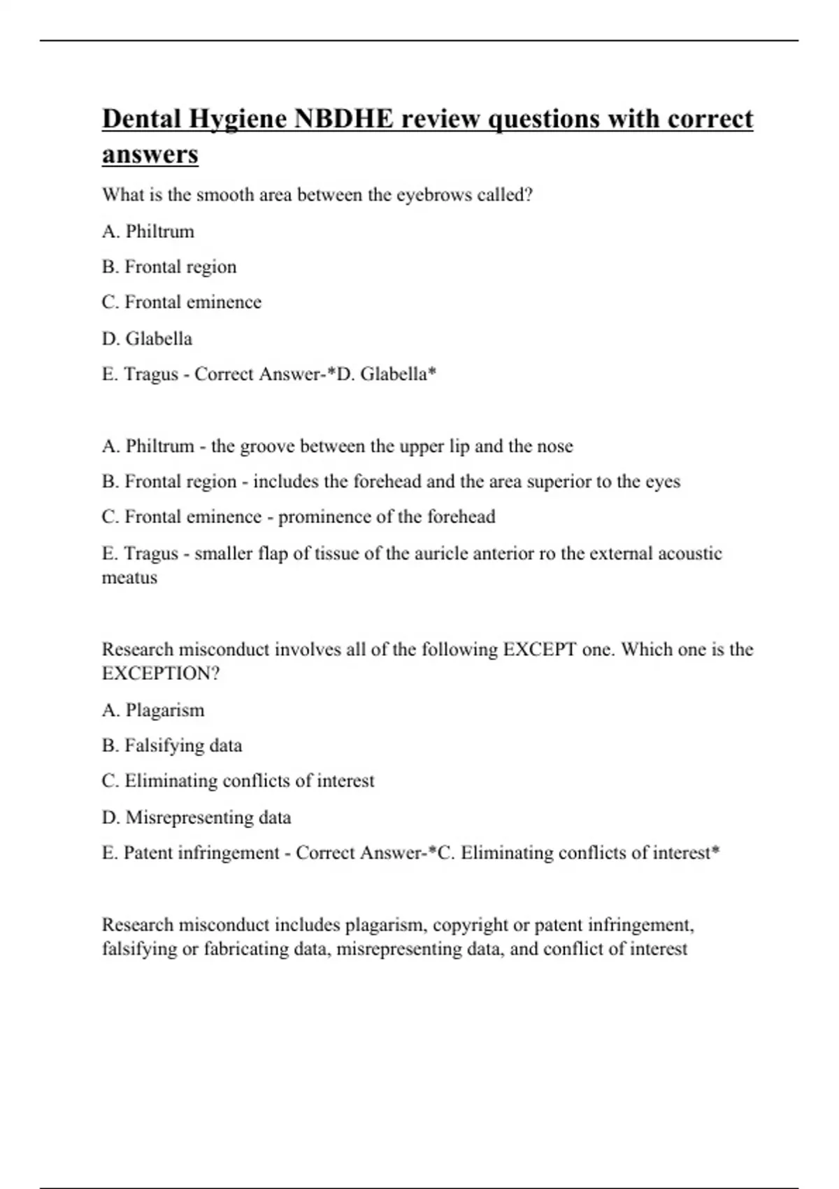 Dental Hygiene NBDHE review questions with correct answers