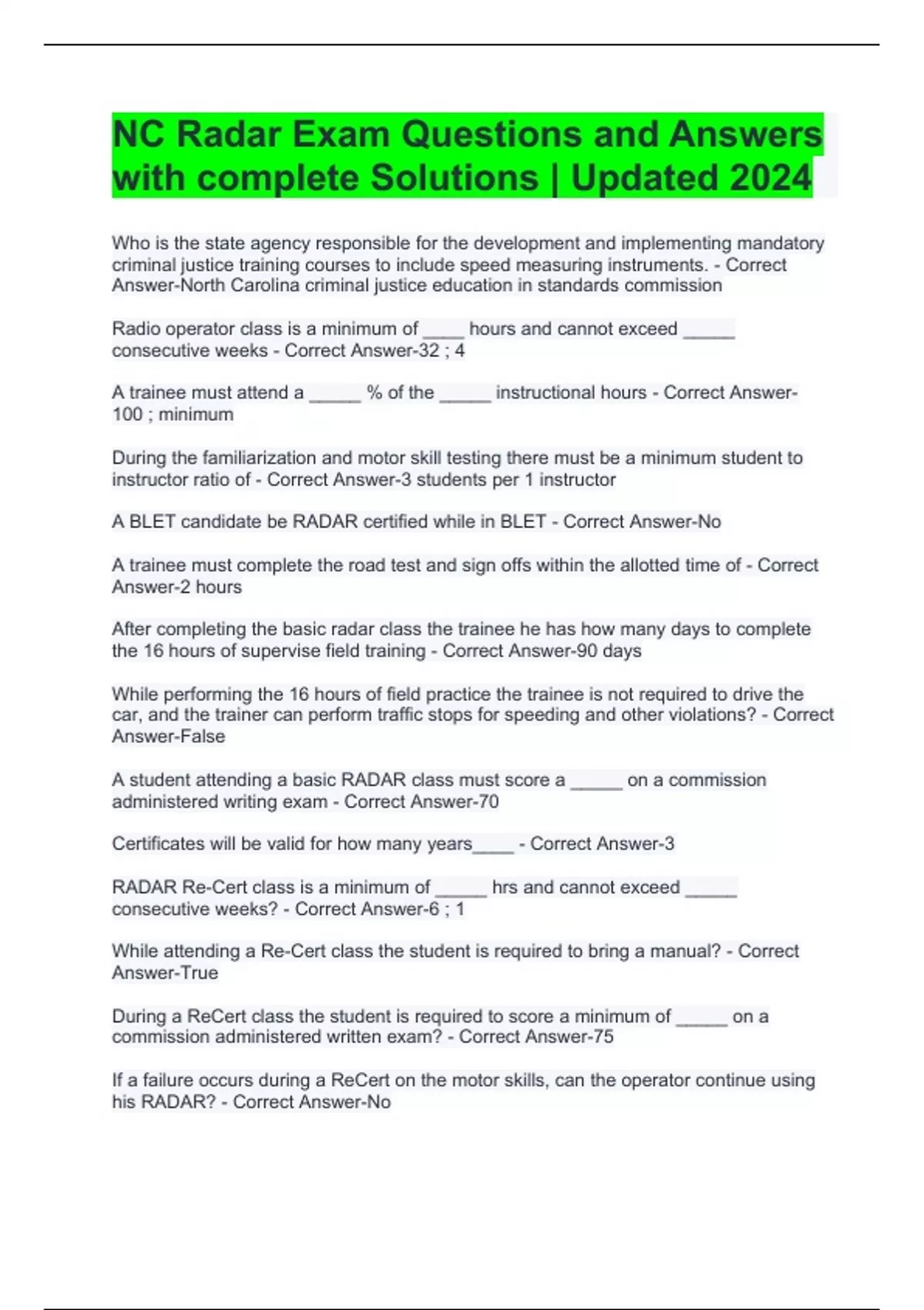 NC Radar Exam Questions and Answers with complete Solutions | Updated 2024