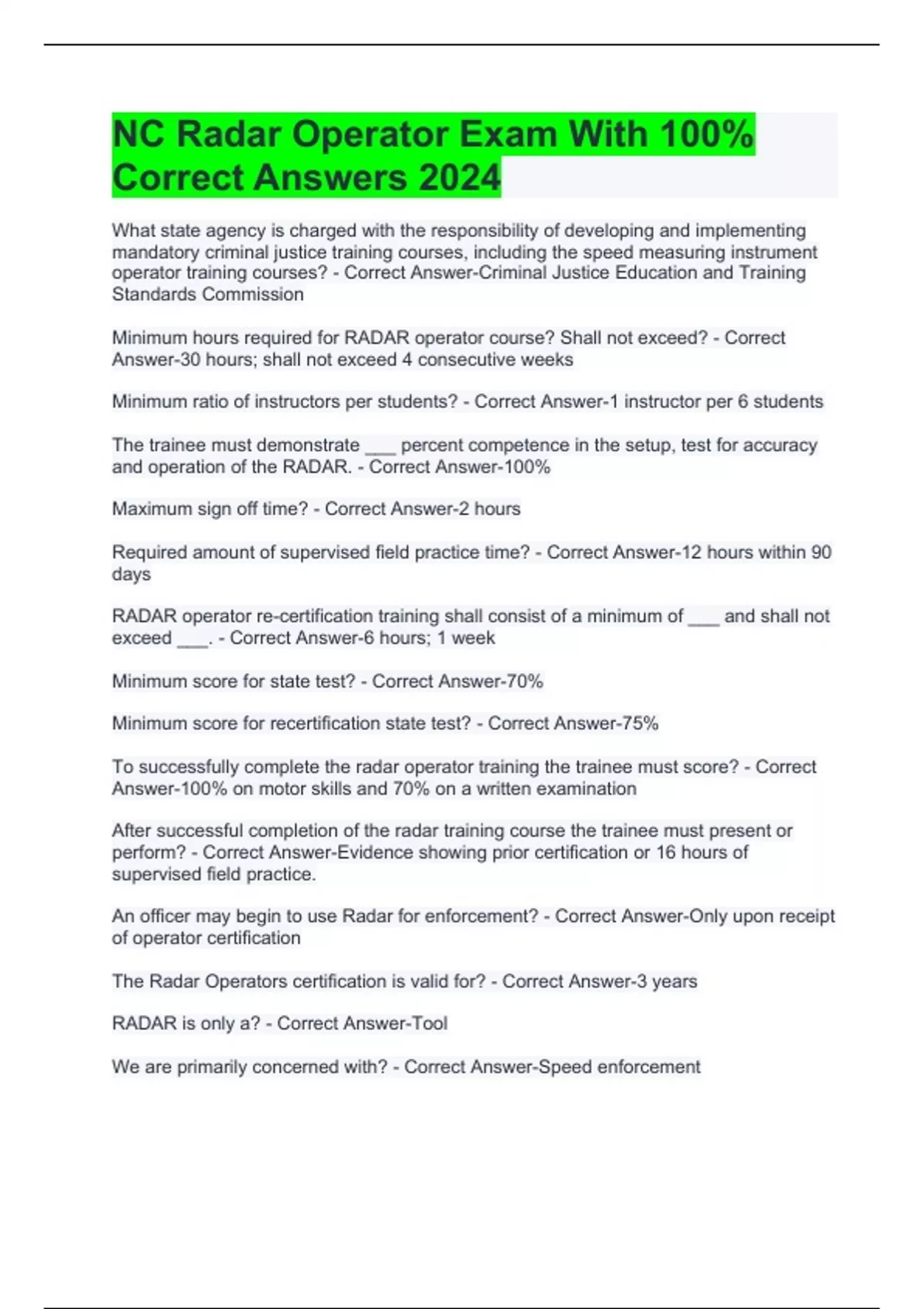 NC Radar Operator Exam With 100% Correct Answers 2024