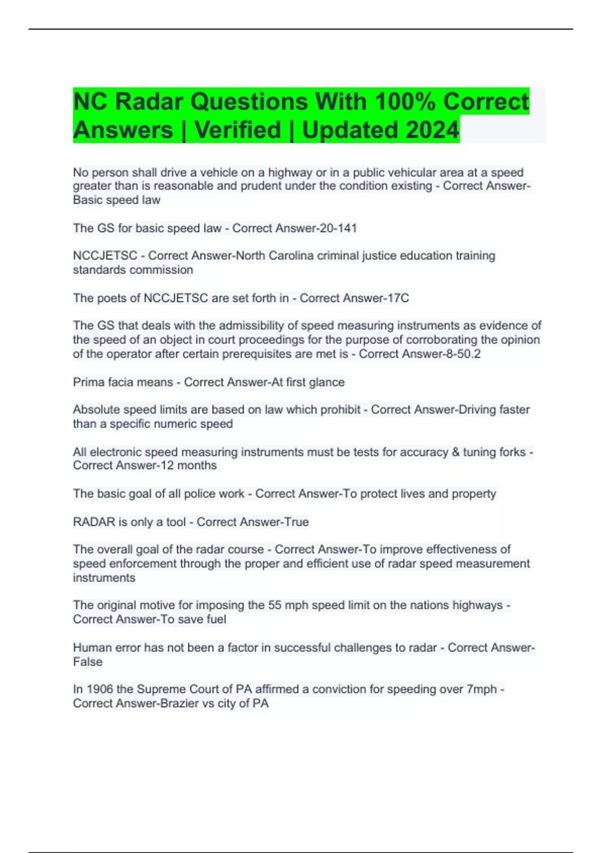 NC Radar Questions With 100% Correct Answers | Verified | Updated 2024