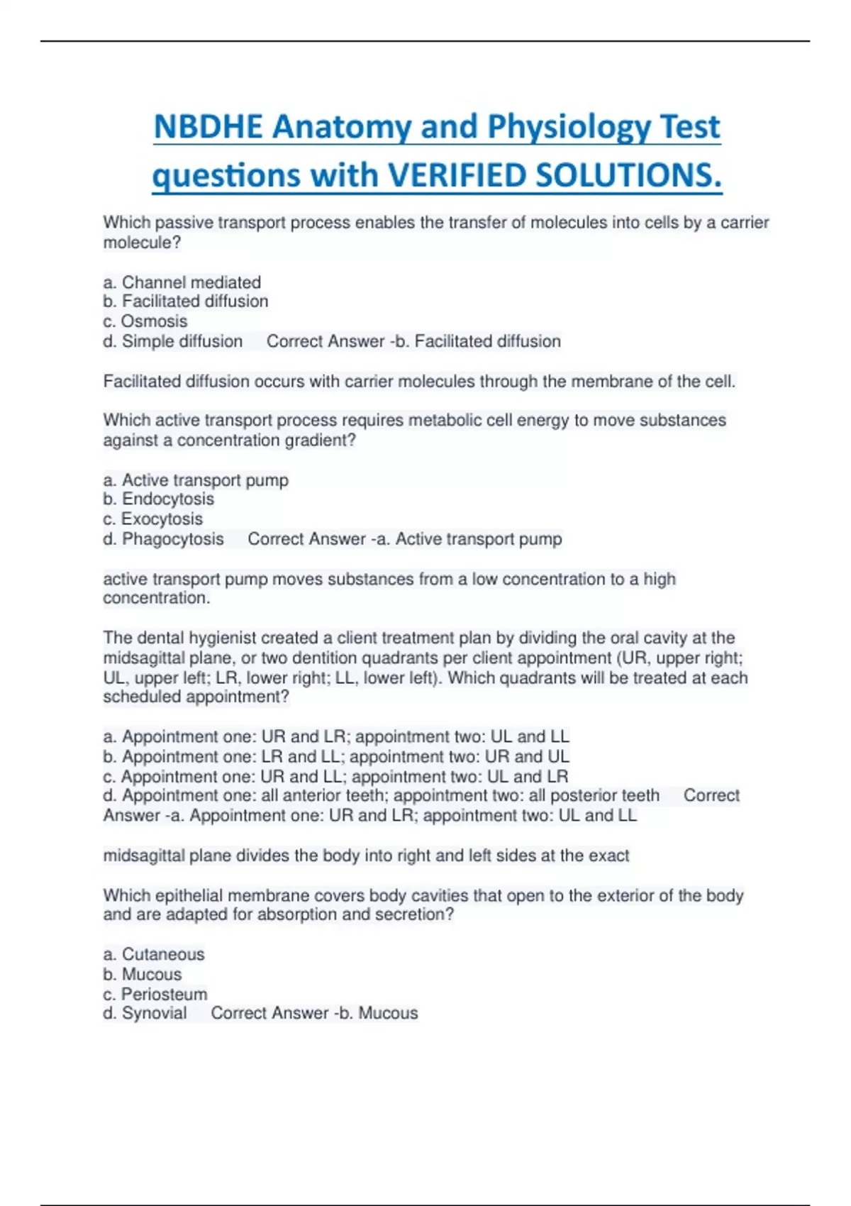 NBDHE Anatomy and Physiology Test questions with VERIFIED SOLUTIONS.