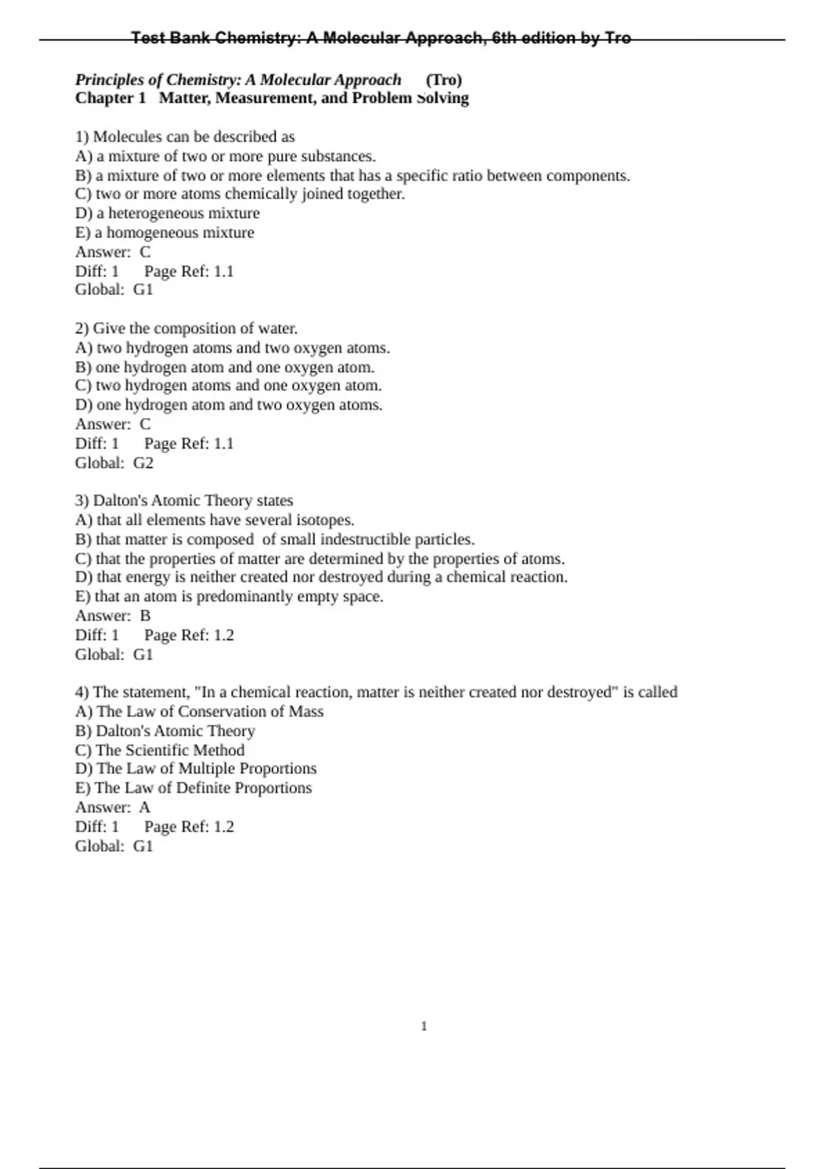 Test Bank Chemistry: A Molecular Approach, 6th edition by Nivaldo J. Tro _All Chapters