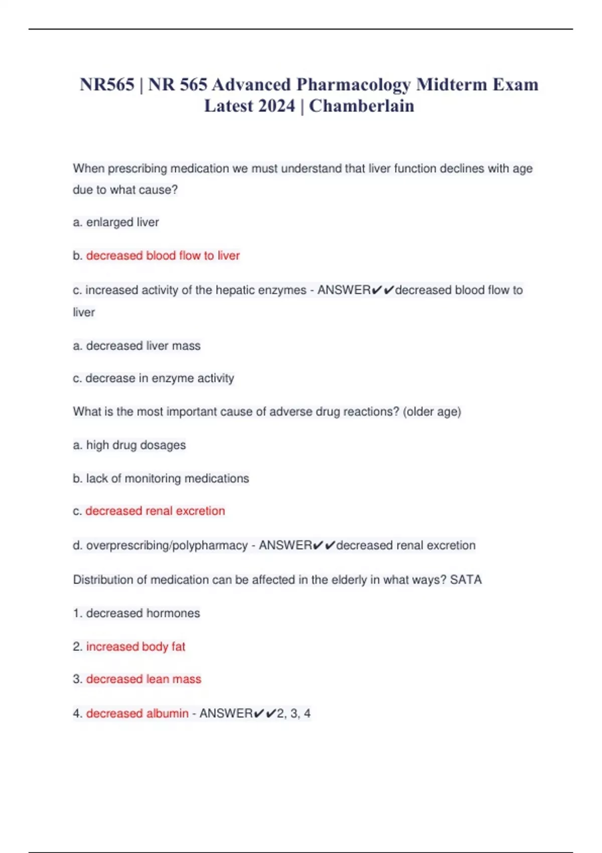 NR565 | NR 565 Advanced Pharmacology Midterm Exam Latest 2024 -Chamberlain