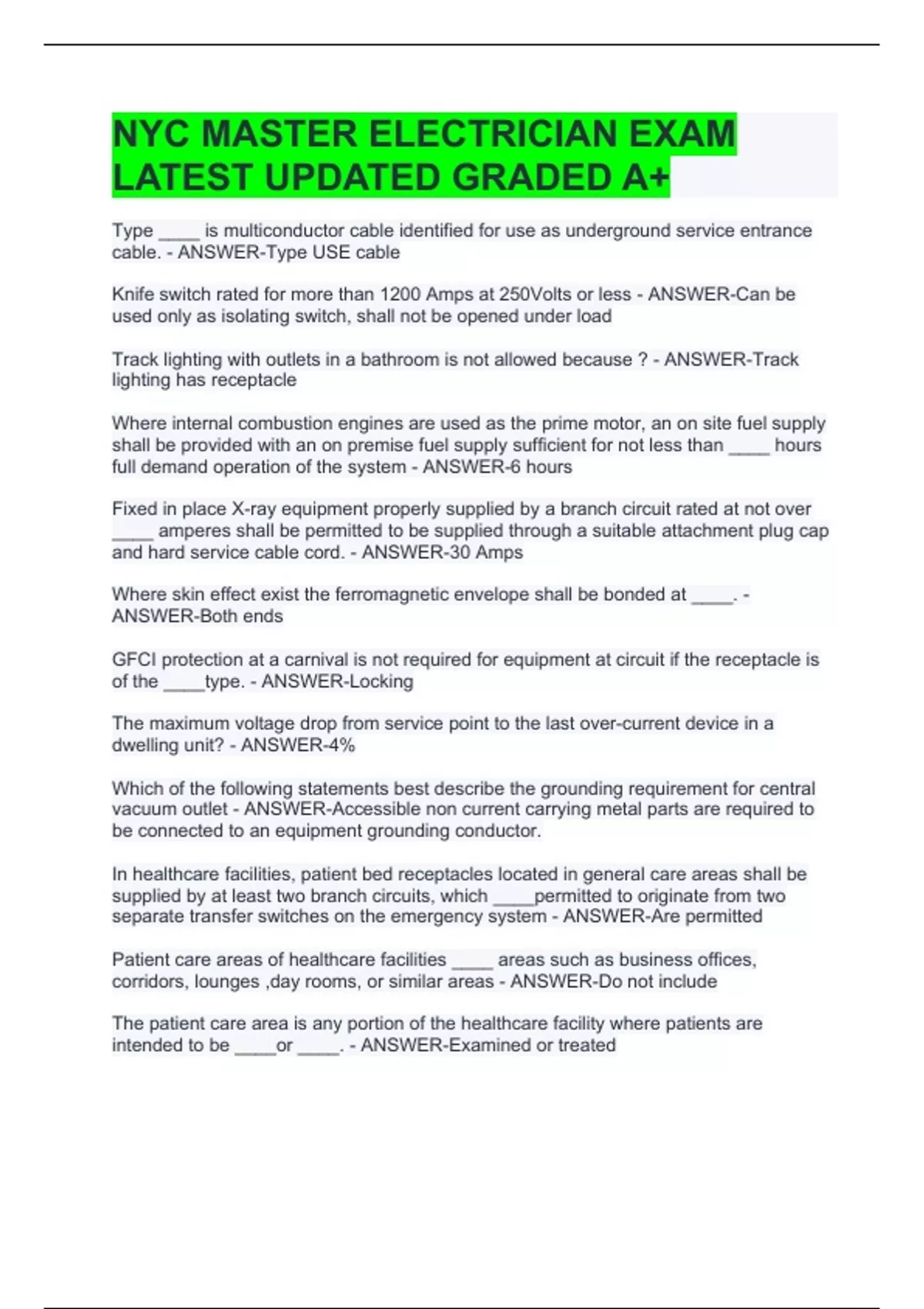 NYC MASTER ELECTRICIAN EXAM LATEST UPDATED GRADED A+