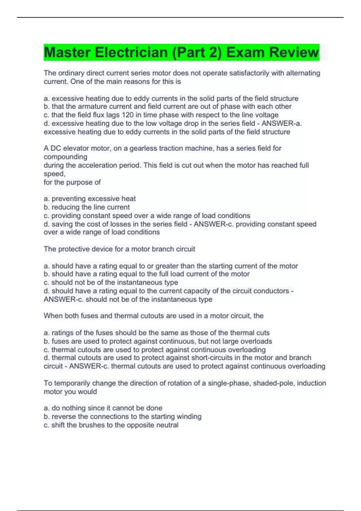 master electrician part 2 exam review