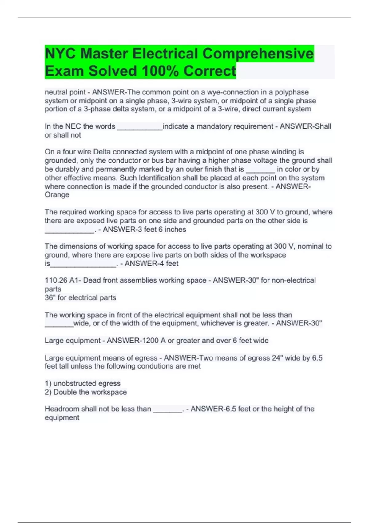 NYC Master Electrical Comprehensive Exam Solved 100% Correct