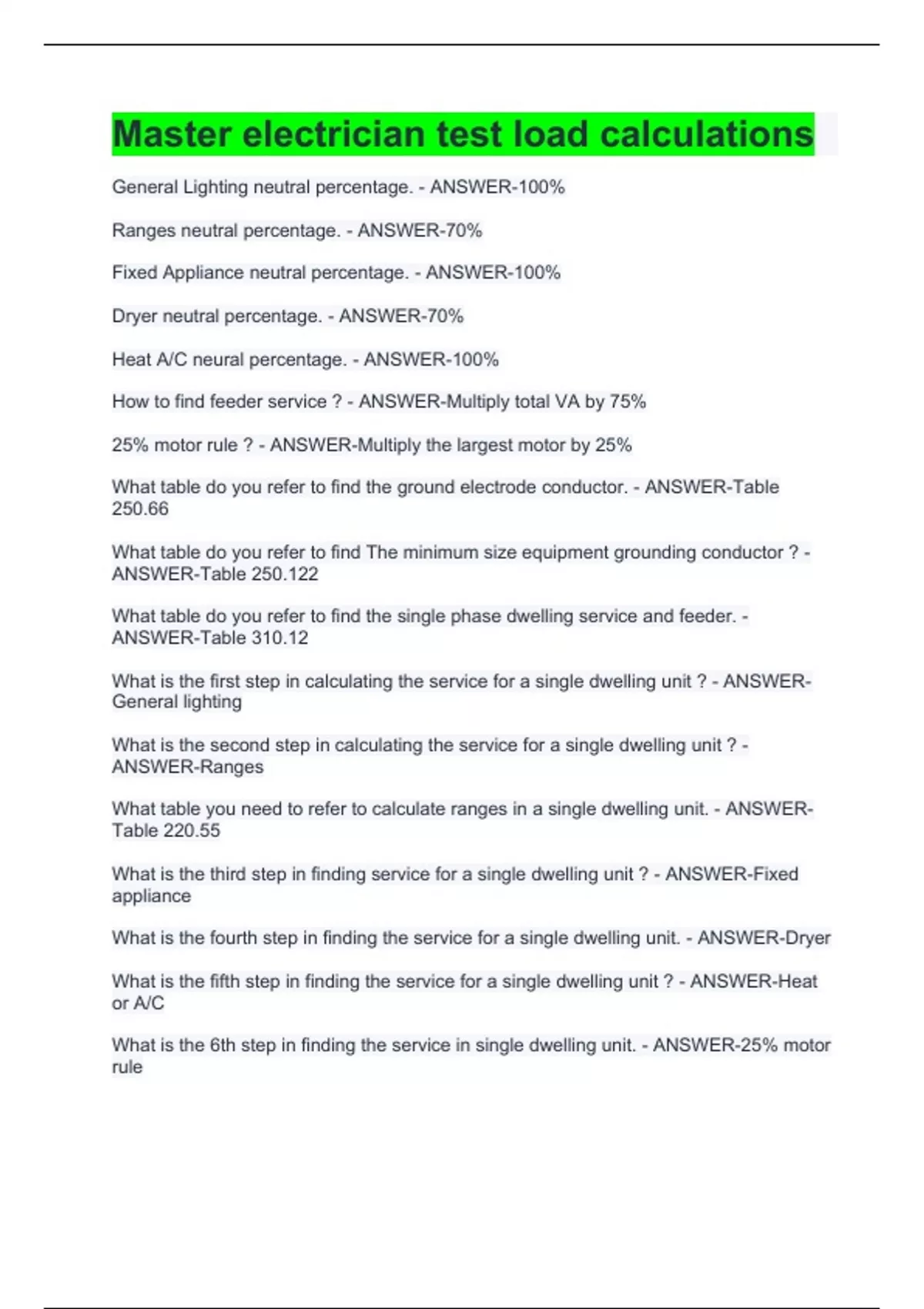 Master electrician test load calculations