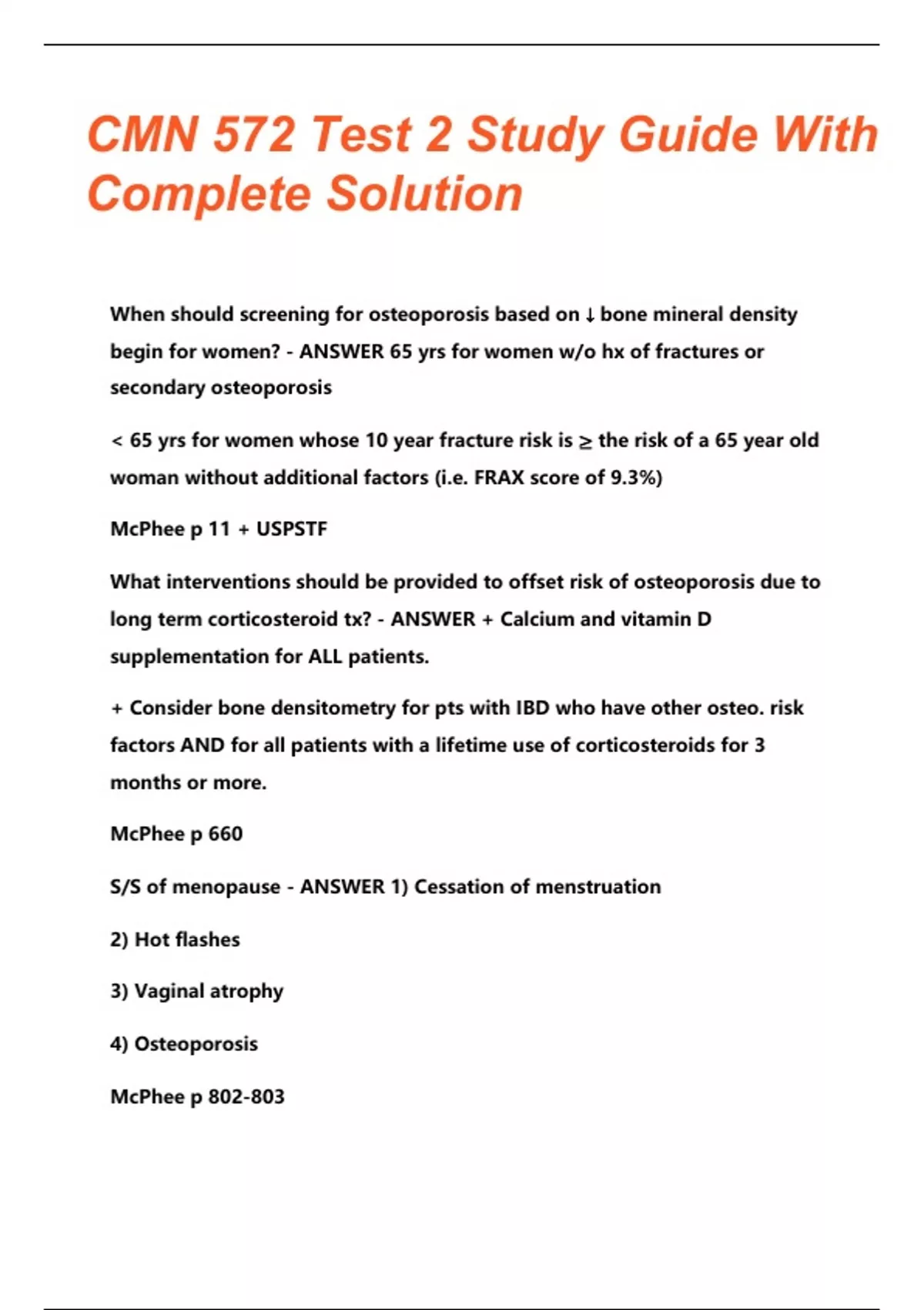cmn 572 test 2 study guide with complete solutio