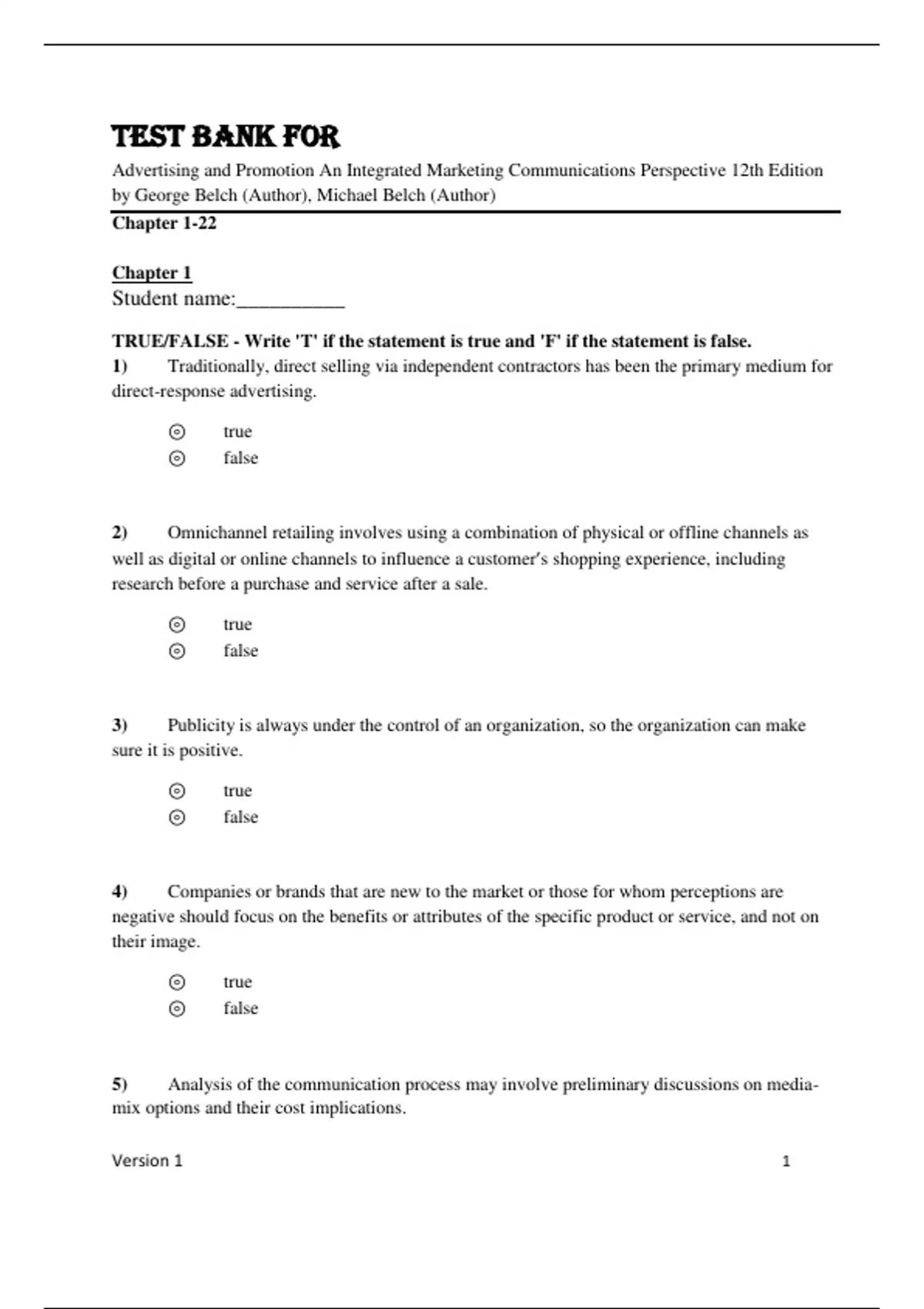 Test Bank For Advertising and Promotion An Integrated Marketing Communications Perspective 12th Edition by George Belch, Michael Belch