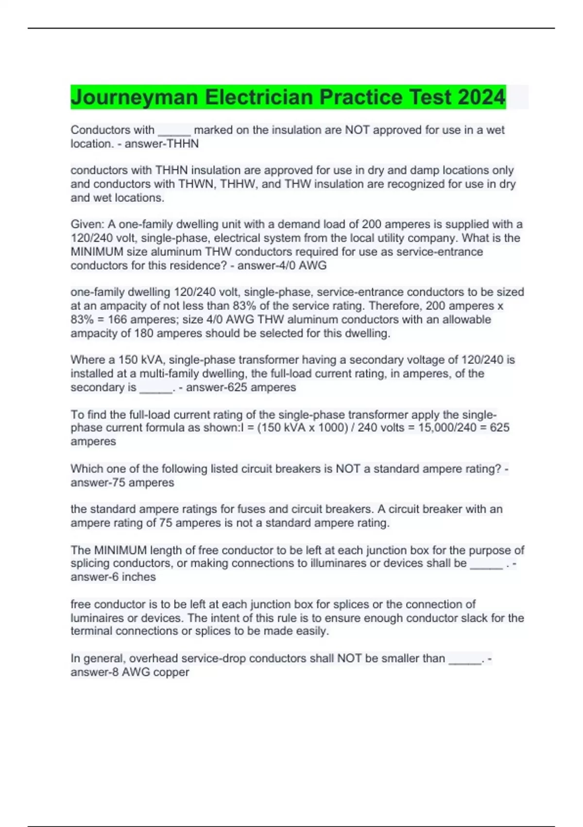 Journeyman Electrician Practice Test 2024