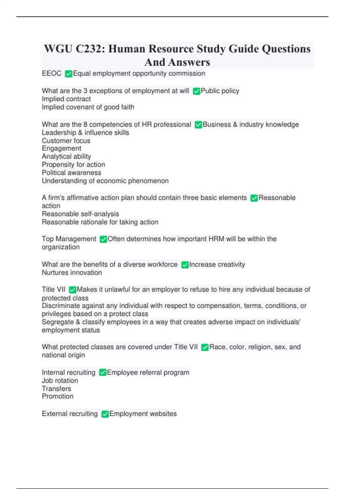 WGU C232: Human Resource Study Guide Questions And Answers WGU C232: Human Resource Study Guide Questions And Answers