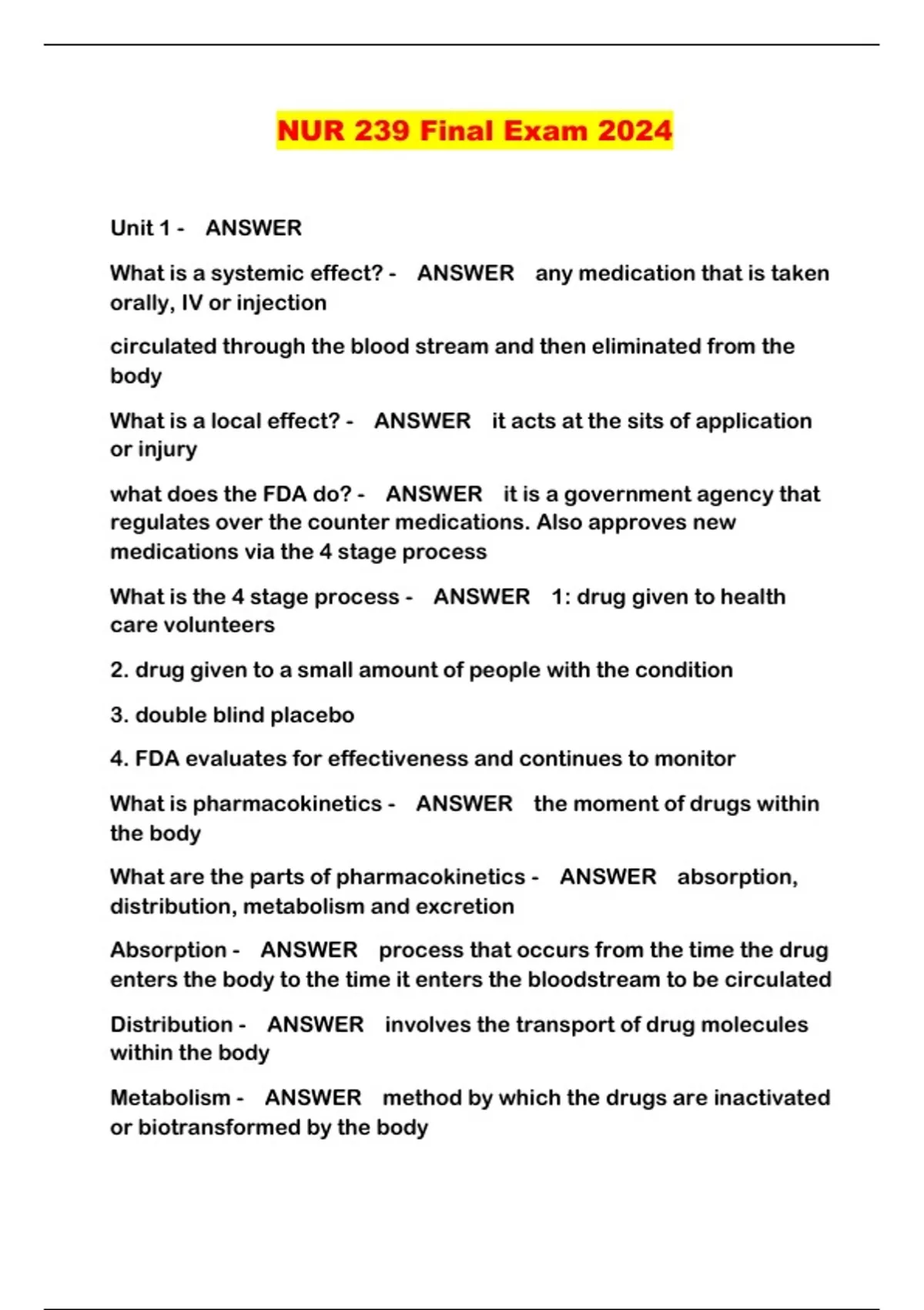 NUR 239 Final Exam 2024