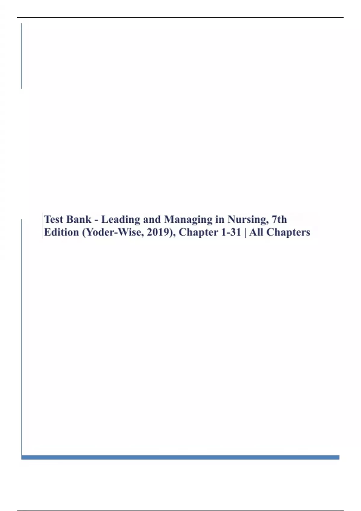 , Leading and Managing in Nursing 7th Edition Yoder-Wise Test Bank