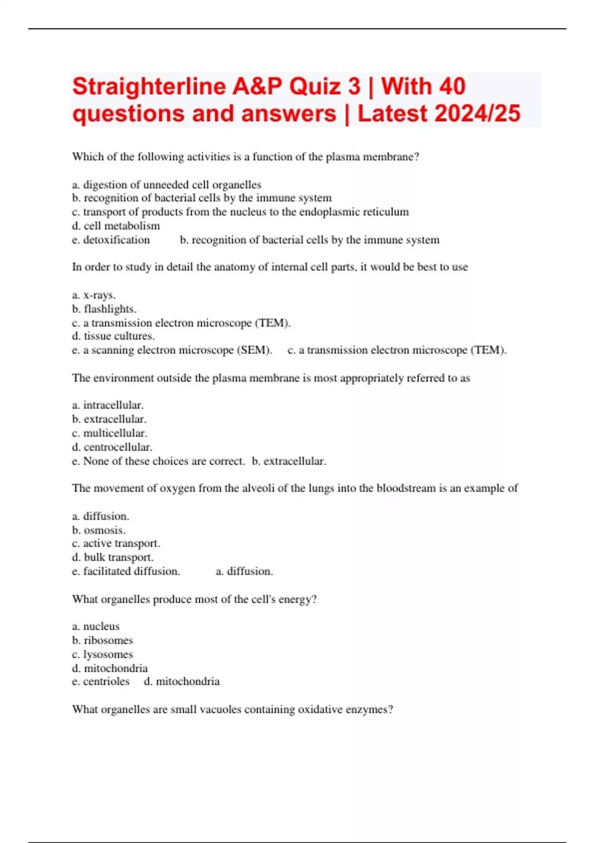 Straighterline A&P Quiz 3 | With 40 questions and answers | Latest 2024/25