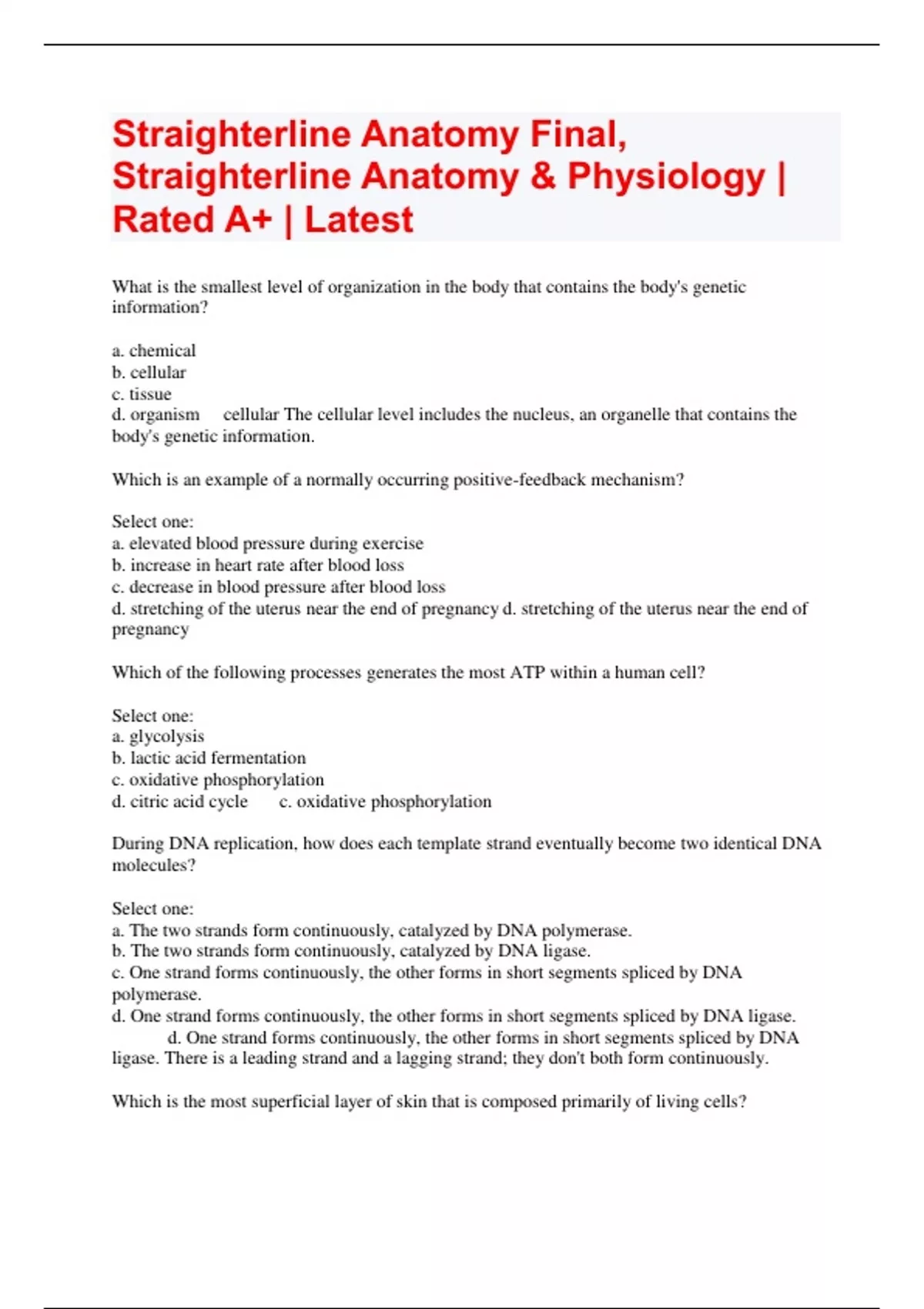 straighterline anatomy final straighterline anato