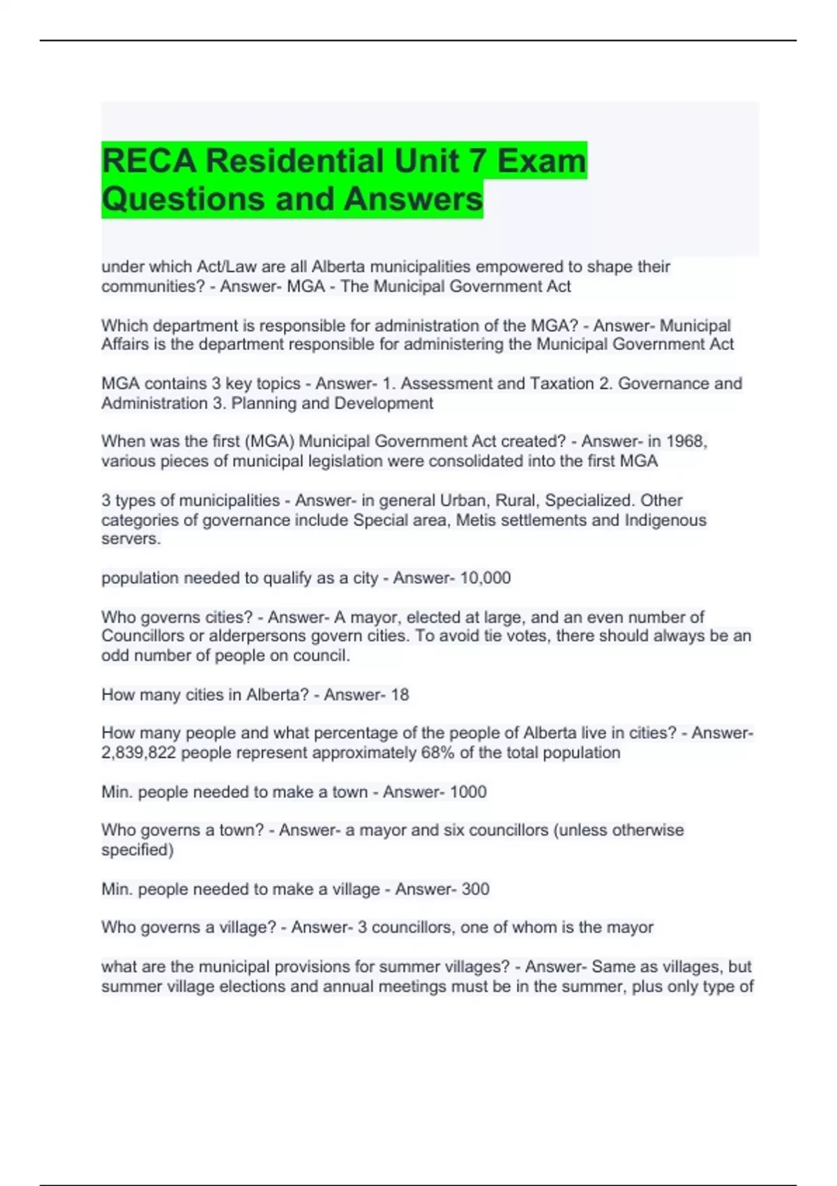 RECA Residential Unit 7 Exam Questions and Answers | Graded A