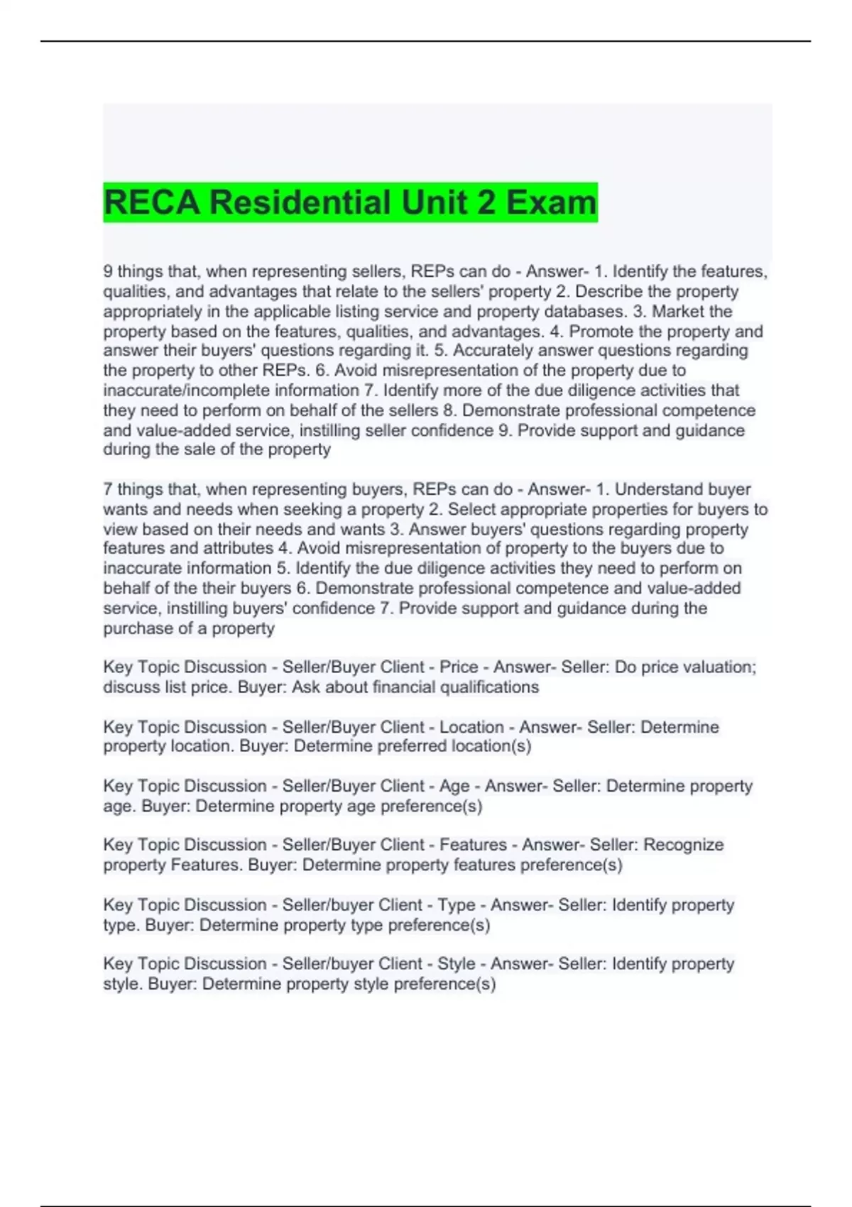 RECA Residential Unit 2 Exam