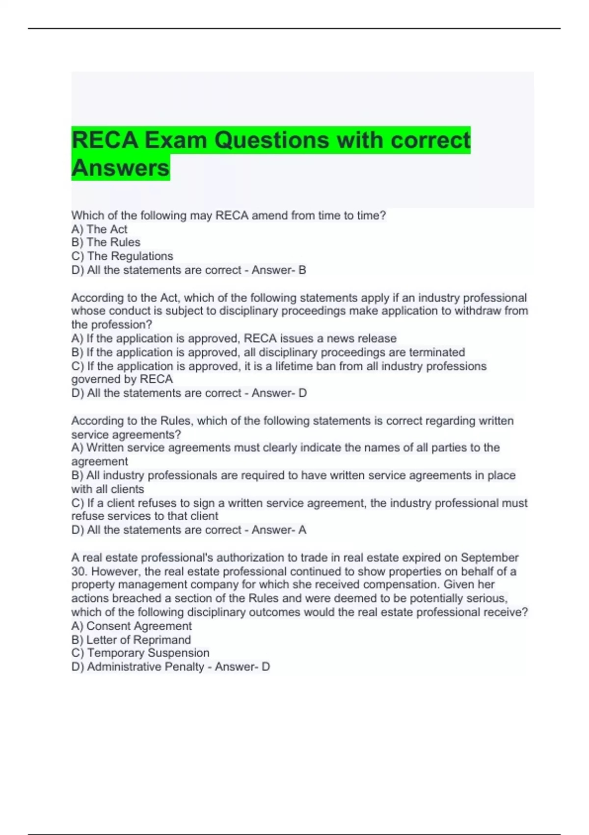 RECA/Alberta Real Estate Exam Bundle (Graded A)