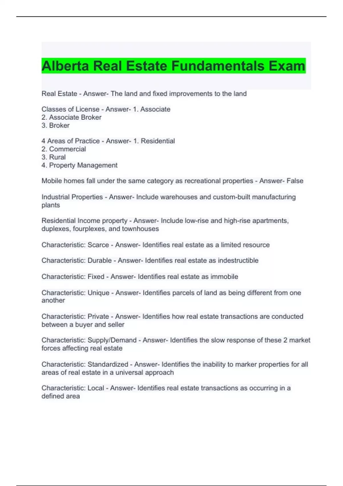 RECA/Alberta Real Estate Exam Bundle (Graded A)