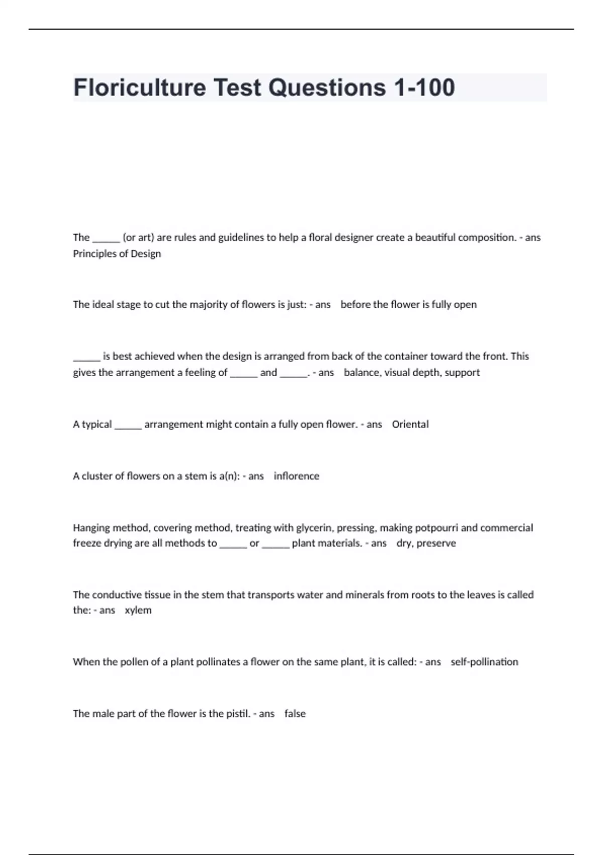 Floriculture Test Questions 1-100