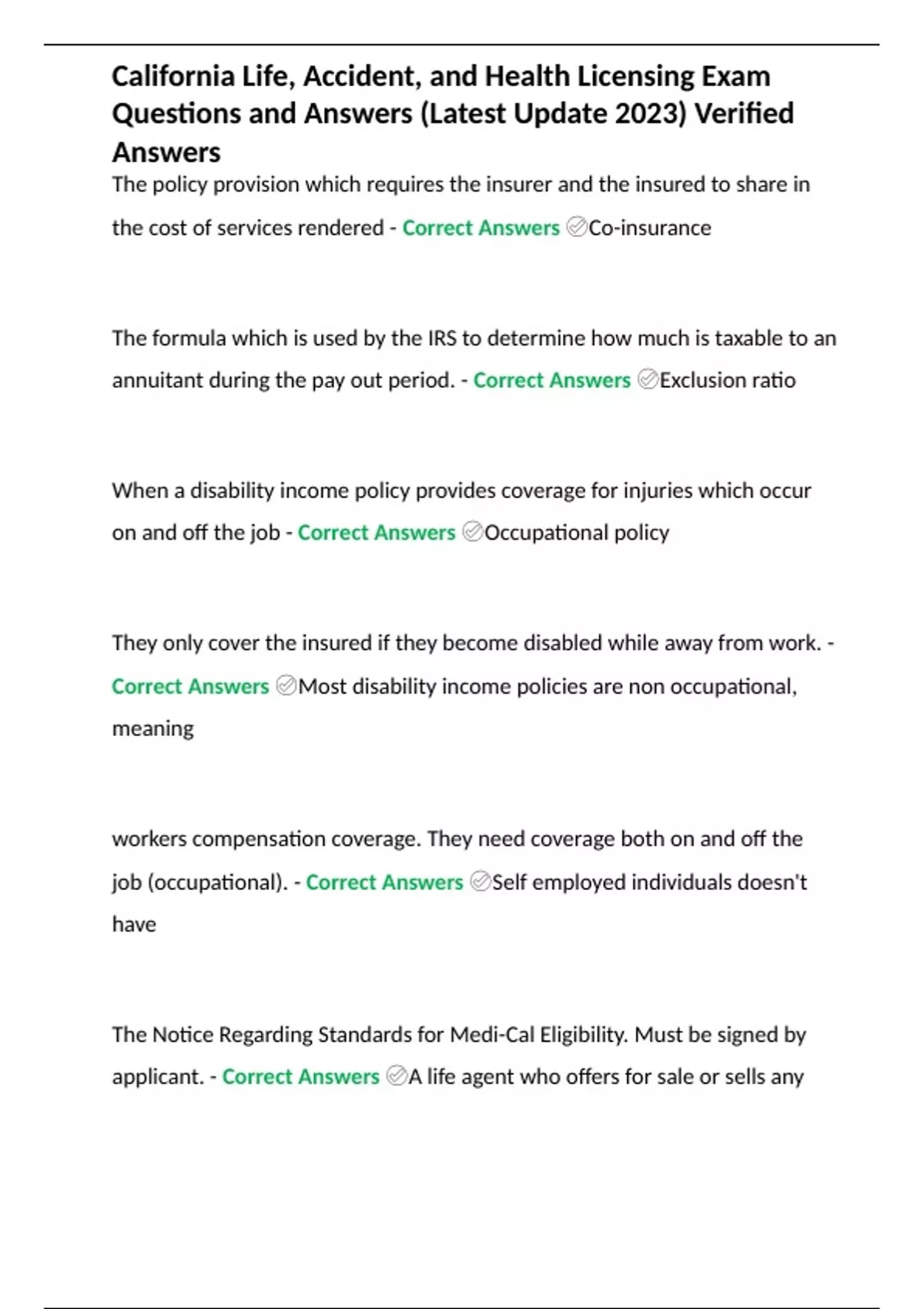 California Life, Accident, and Health Licensing Exam Questions and Answers (Latest Update 2023) Verified Answers
