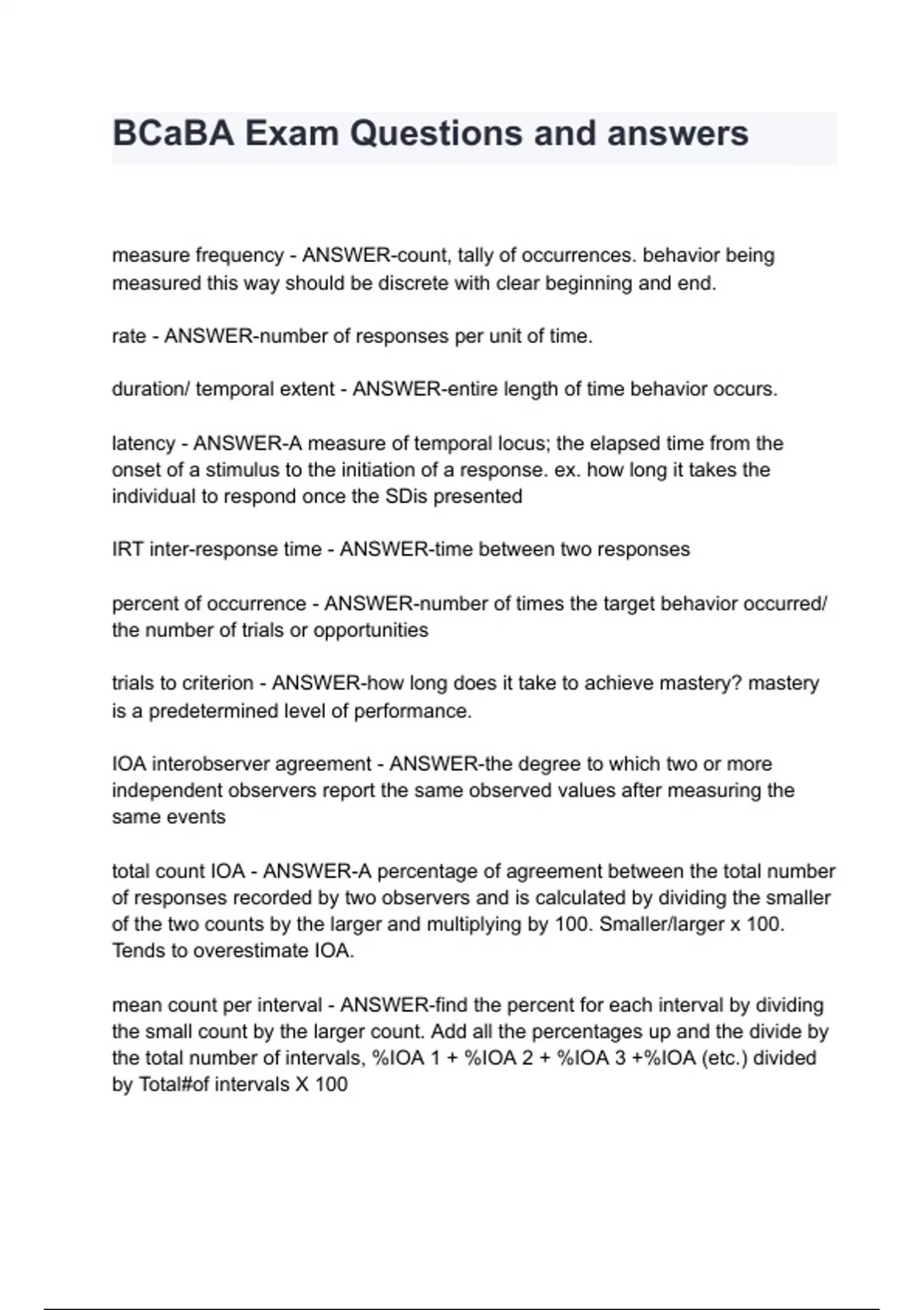 BCaBA Exam Questions and answers
