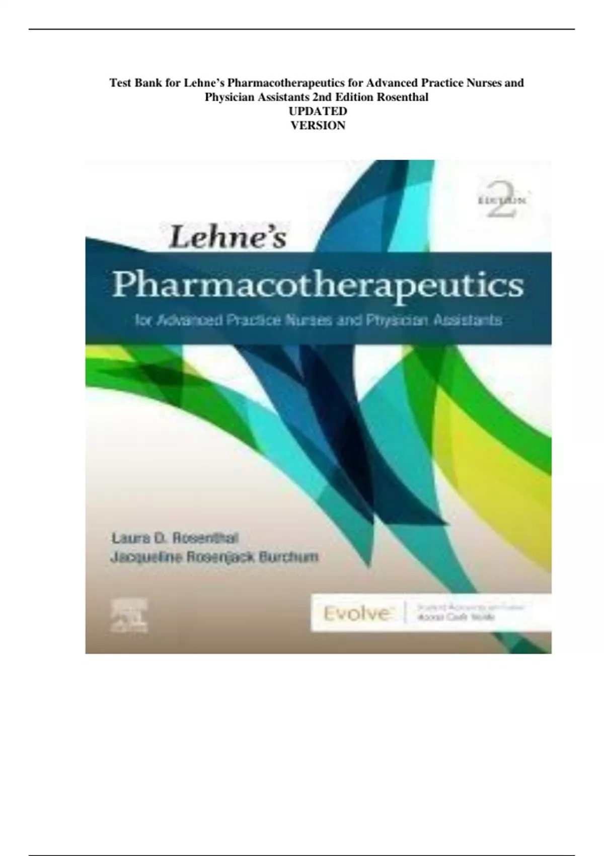 Test Bank for Lehne’s Pharmacotherapeutics for Advanced Practice Nurses and Physician Assistants 2nd Edition Rosenthal UPDATED VERSION